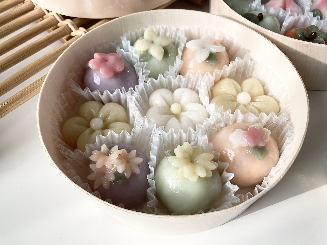 : 천연 가루(자색고구마/단호박/쑥), 색소 가루(치자청색소), 콩가루, 삼각봉, 원형 나무상자, 포장봉투 주문하기