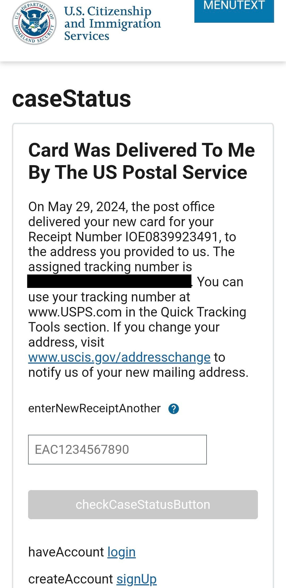 정부 홈페이지에서 카드 배송 완료되었다고 뜨네? 어라. 설마 하고 USPS에 들어갔더니 진짜로 배송됐다. 이때부터 멘붕 시작.