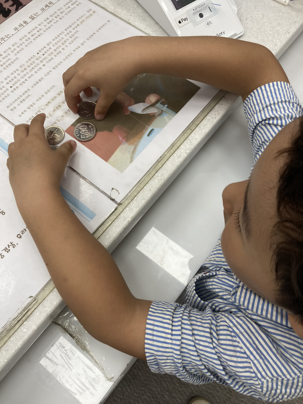저금통의 존재는 칭찬 스티커와 같은 맥락인데 우리는 스티커 대신에 진짜 돈을 사용한다. 500원짜리 동전이고 특별히 동전에 '도토리'라는 이름을 붙여주었다. 경제동화책에서 그렇게 부르는데 우리도 따라 해 보면 어떨까 싶어서 일단 해보았다.