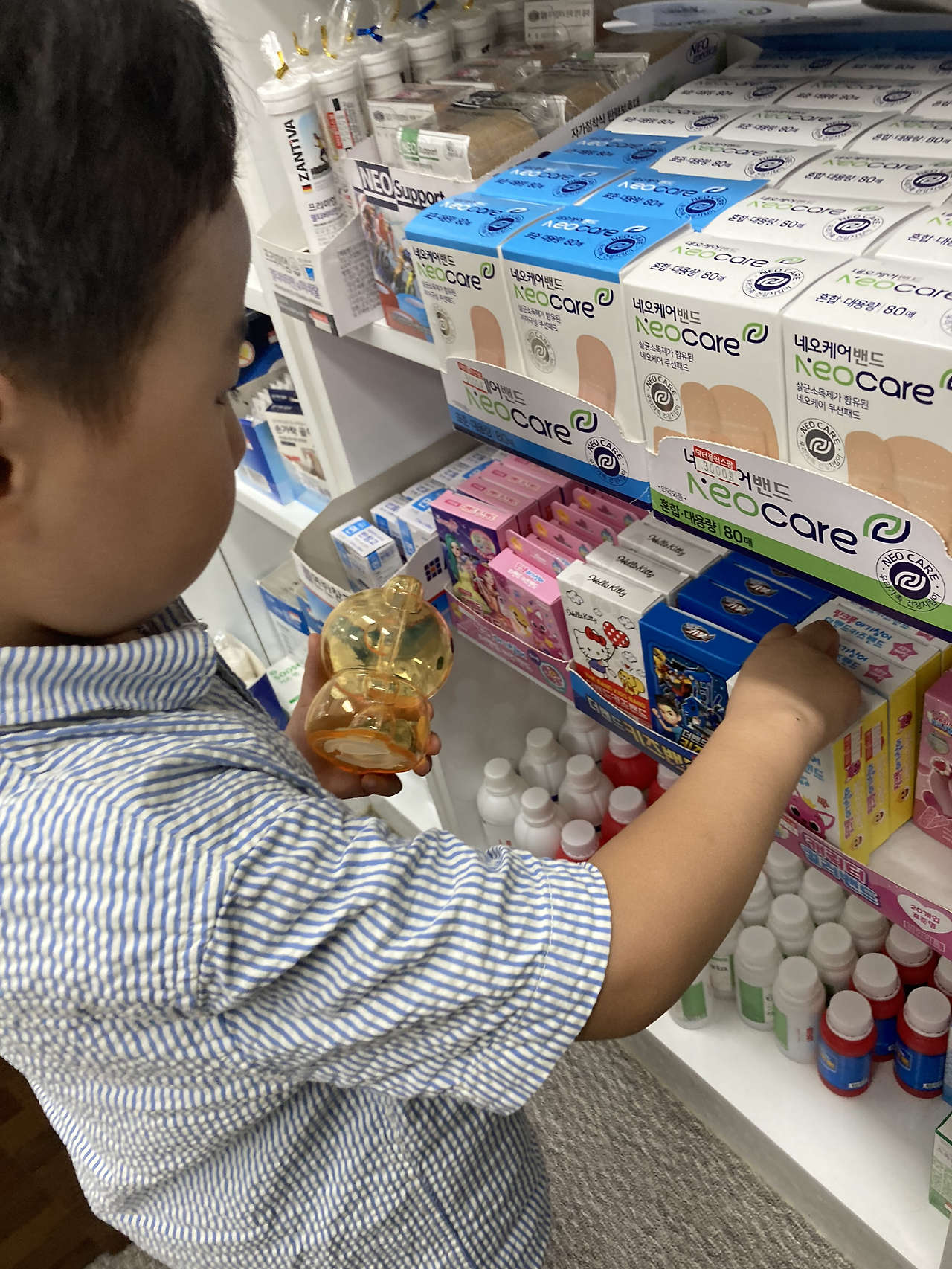 장소는 할머니댁 거실 한편에 있는 약통 앞. 둘째가 반창고를 붙여달라고 노래를 불러서 첫째랑 셋이서 약통을 열어보았다. 그런데 그 많던 반창고들이 하나도 없는 것이었다. 그래서 둘째에게 반창고가 하나도 없어서 붙여줄 수 없다고 여러 번 설명했지만 그 사실에 대해 인정할리 없는 둘째. 그때 첫째가 얼굴을 내밀더니 본인이 약국에 가서 사 오겠다고 했다. 할머니 선물이라고. 그러면서 내일 곰돌이 저금통을 들고 약국에 가자고 했다. 웃으면서 그러자고 하긴 했는데 사실 많이 놀랐다. 생각이 깊은 건지 할머니를 그만큼 사랑하는 건지. 벌써 어른이 된 건가 싶었다. 그리고 다음날 정말로 우리는 곰돌이 저금통을 들고 약국에 갔고 첫째는 반창고 두 박스를 집었다. 도토리 몇 개를 내야 되냐고 물어보길래 4개를 드리면 된다고 했다. 그런데 4개를 꺼내고 나면 2개밖에 안 남아서 속상해할 줄 알고 내심 긴장했는데 신경도 안 쓰는 듯 보여서 한번 더 놀랬다.