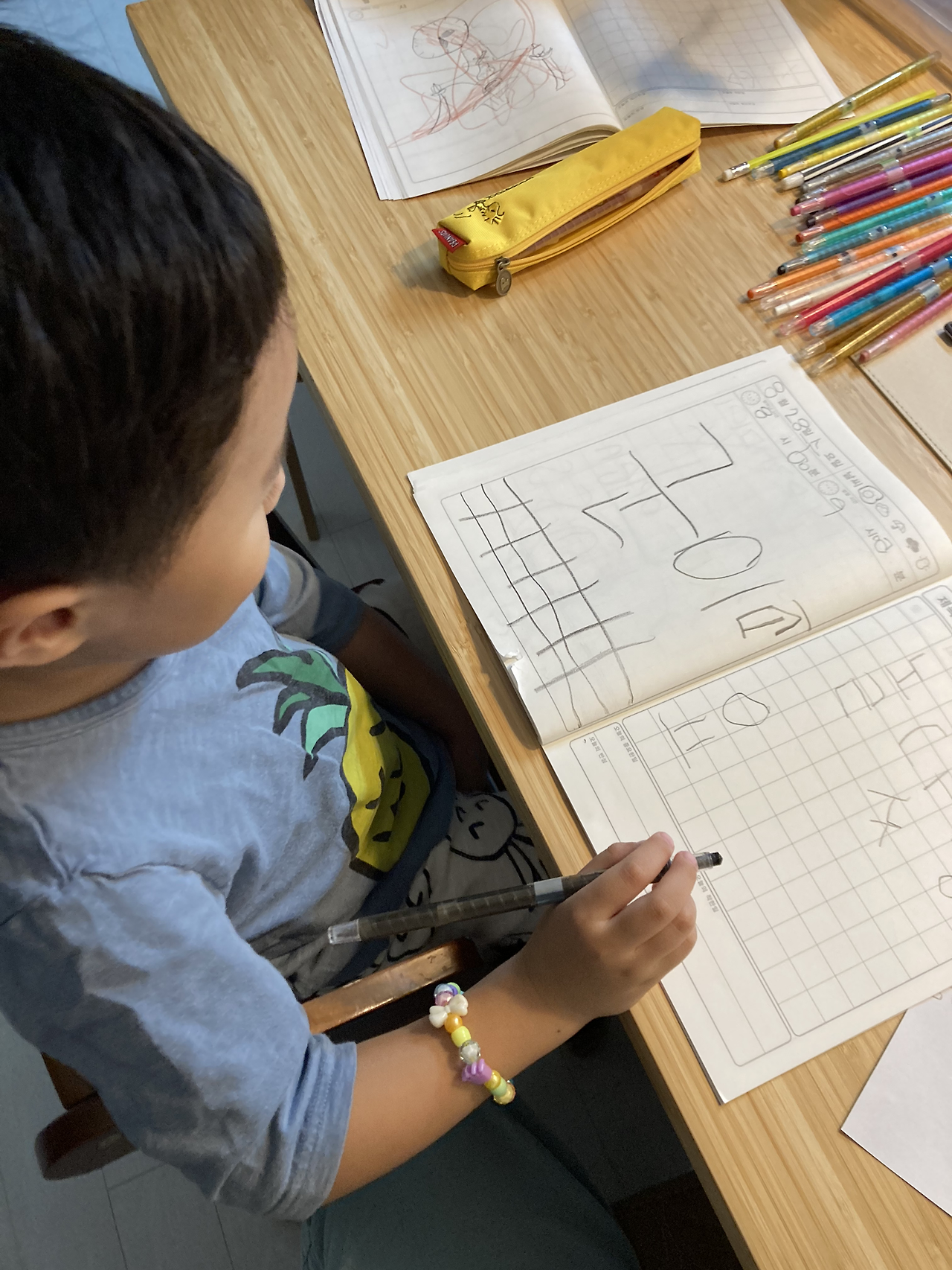 같이 앉아주는 것만으로도 고마운데 이제는 엄마가 말하기도 전에 먼저 식탁으로 가서 본인 공부 가방을 펼쳐놓는다. 엄마 연필까지 옆에 가지런히 놓아준다. 그리곤 그동안 썼던 일기들을 한 번씩 훑어보고 새 페이지를 펼쳐놓는다. 그리고 엄마를 기다리고 있다.
