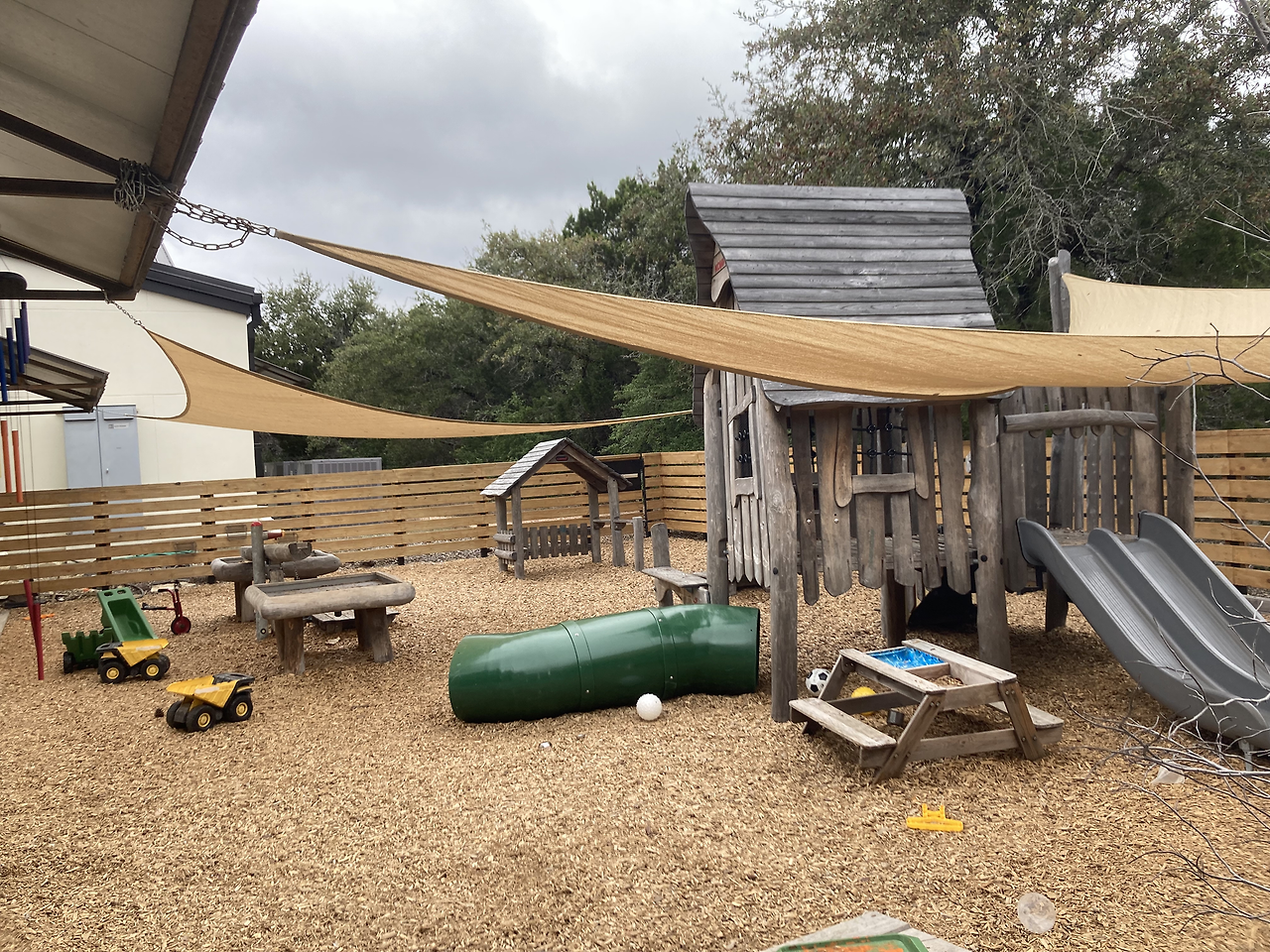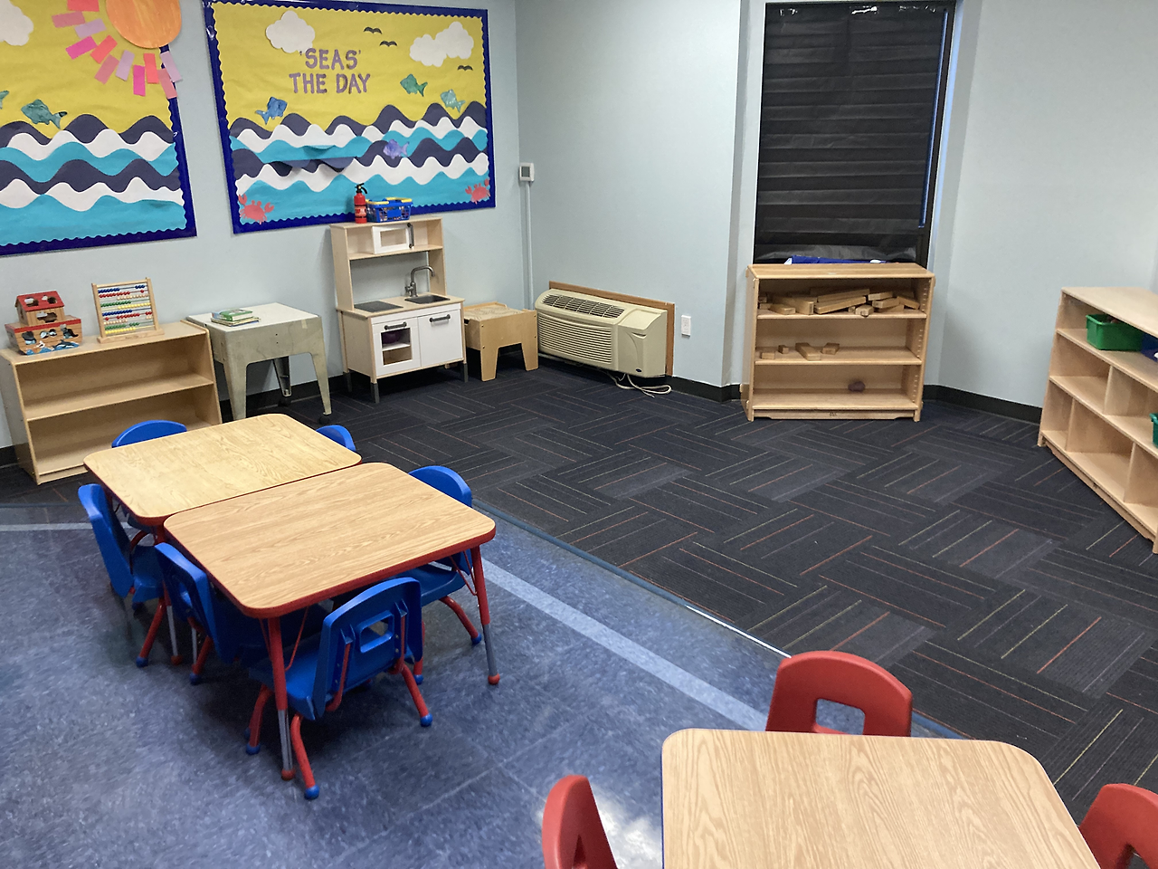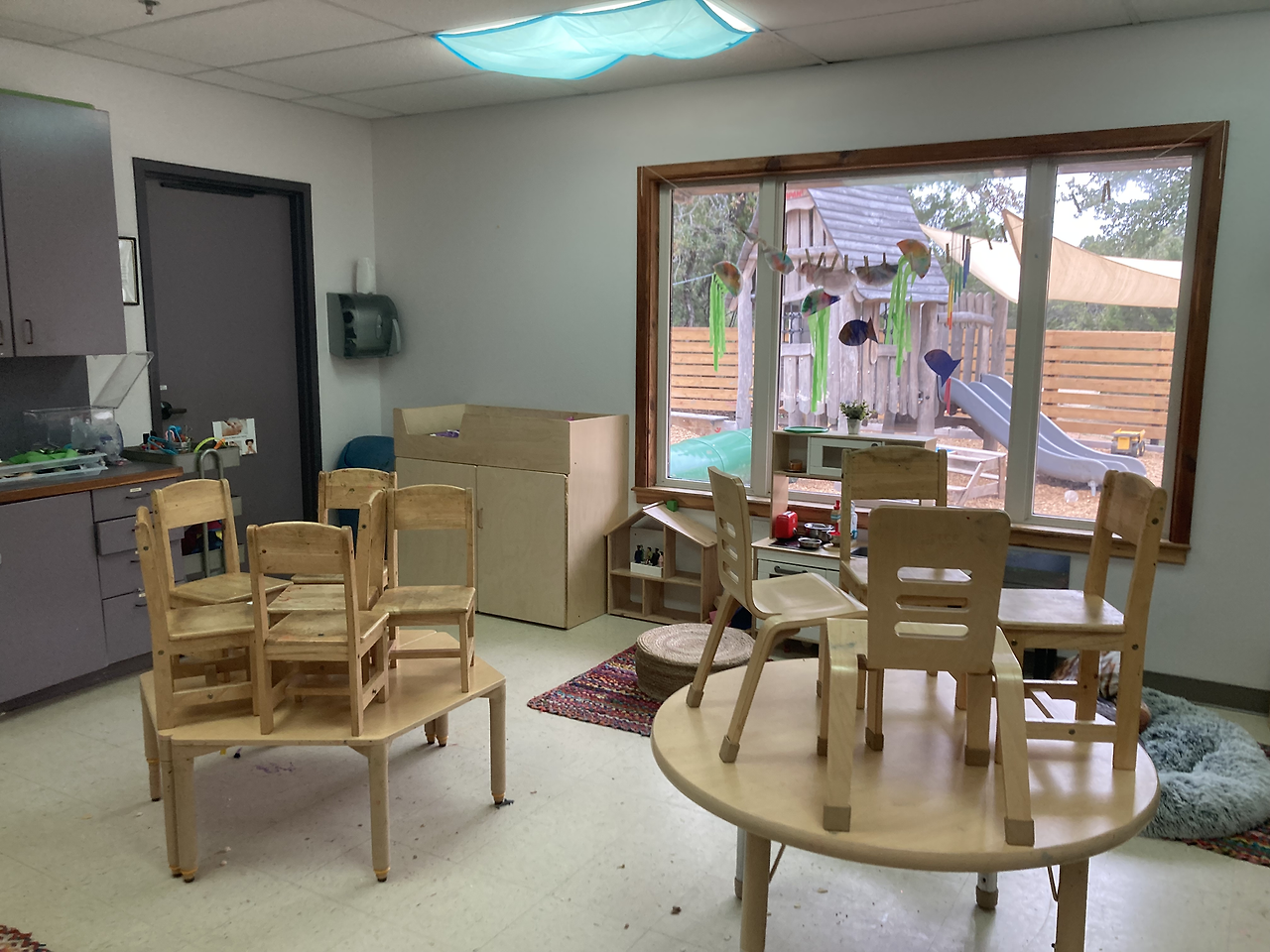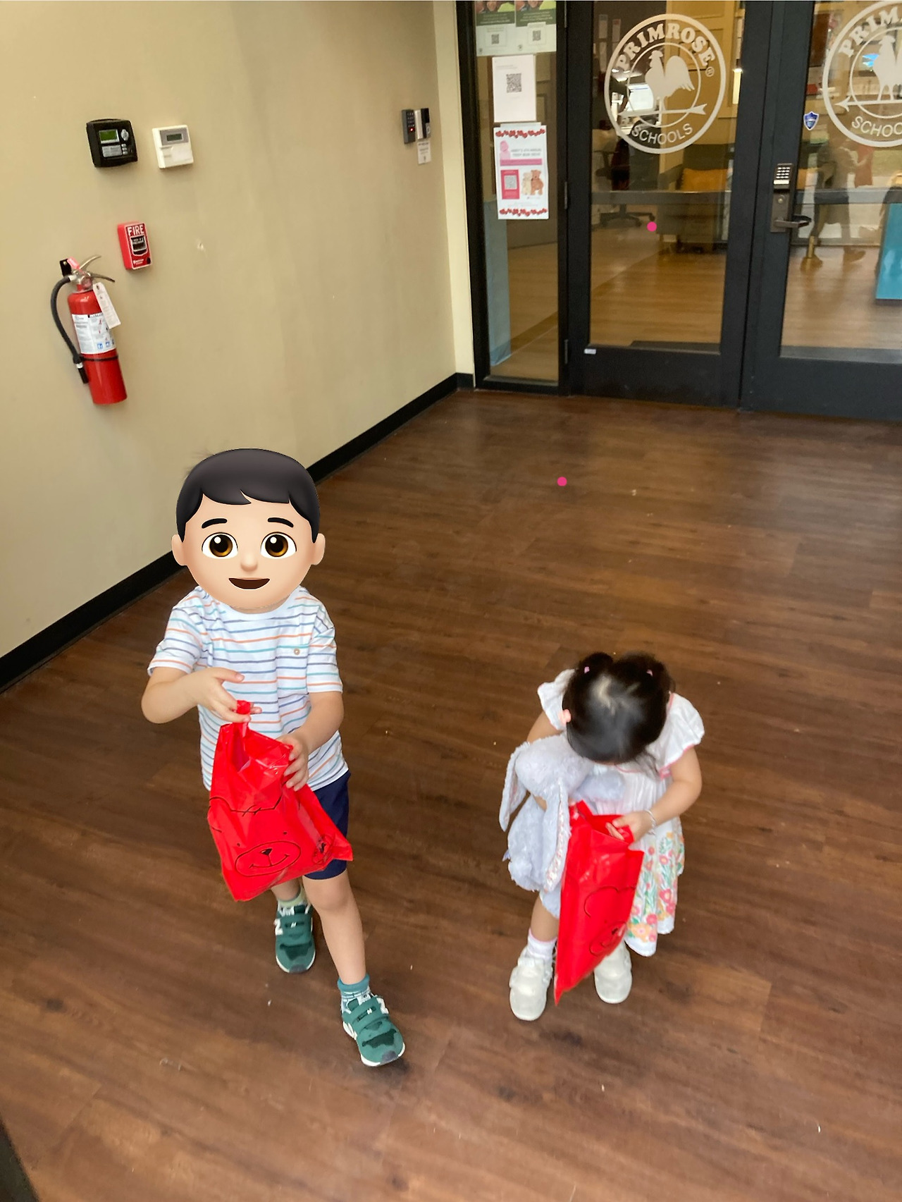 우리 셋을 가장 기분 좋게 반겨준 학교였다. 장점 (예약 시간에 맞춰갔더니) 카운터에 권 패밀리!라고 적어주고 스크린에도 환영한다는 문구가 보였다. 장점 직원들도 모두 밝게 보였고 내부도 매우 깔끔했다. 마침 놀이터 쪽에서 아이들 노는 소리가 들려 잠깐 구경했다. 큰 형님반을 위한 큰 놀이기구는 있었지만 단점 아장 아기들은 작은 공간에서 쪽쪽이만 물고 있어 조금 답답해 보였다. 만 4세 반 교실 내부는 굉장히 넓었고 (뜀뛰기 판을 쌓아 올려놓은 듯한) 간이 낮잠 침대들도 있었다. 첫째는 낮잠을 안 자서 이곳을 선택하지 않았지만 저녁 6시쯤 하원하는 친구들에겐 필요한 시간일 것 같다. 장점 투어 후 울 아가들에게 선물까지 주시는 센스! 덕분에 장난감 하나 없던 집에 소소한 놀잇감들이 생겨 감사했다. 하지만 단점 낮잠뿐만 아니라 월 학비가 너무나 비싸서 고민할 여지도 없이 리스트에서 제외됐다. (명당 월 2000달러... 두 명이면 4000달러... 월급에서 렌트비 빼고 학비 빼면 남는 게.... 무리다 무리)