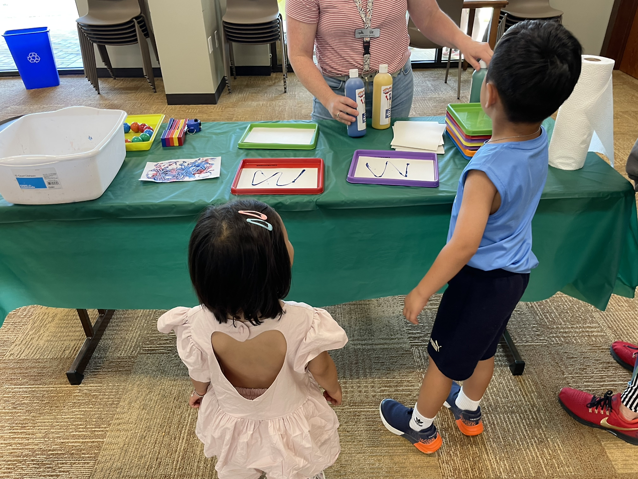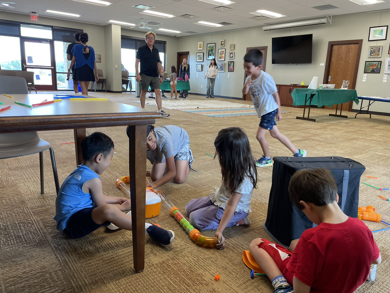 엥? 처음엔 이게 과학교실이 맞나 싶었다. 예상했던 풍경이 아니었다. 교실 안과 밖으로 체험 수업들이 준비되어 있었고 다른 쪽에는 스스로 과학놀이를 할 수 있게 준비되어 있었다. 실내에서 가장 인기 있었던 놀이는 ‘공기의 힘 실험’ 놀이. 학년 불문하고 한데 모여서 다들 얼마나 재밌게 실험(?)했나 모르겠다. 첫째도 한참을 여기에 있었다. 그리고 실외에서는 ‘블록 쌓기’에 관심을 보였다. 큰 형아들한테 가서 “can I play together?"하고 묻더니 형아들을 도와 본인보다 큰 블록들을 열심히 나르던 첫째. 그의 얼굴에선 미소가 떠나질 않았다. (네가 행복하니 엄마도 행복해)
