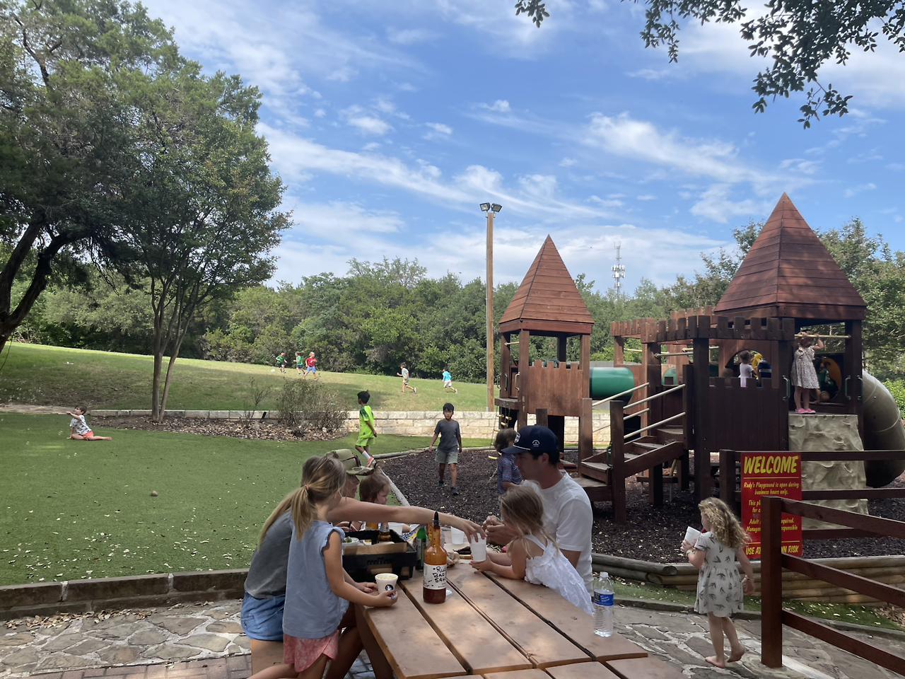 저녁엔 BBQ 식당에서 졸업 디너가 열렸다. 미국에서는 가족 단위 모임이 거의 놀이터 있는 곳에서 열린다(그동안 내가 경험한 바로는 그렇다). 한국에서 키즈카페를 자주 갔던 거 생각하면 아이들이 있는 곳은 어디나 다 비슷한가 보다.