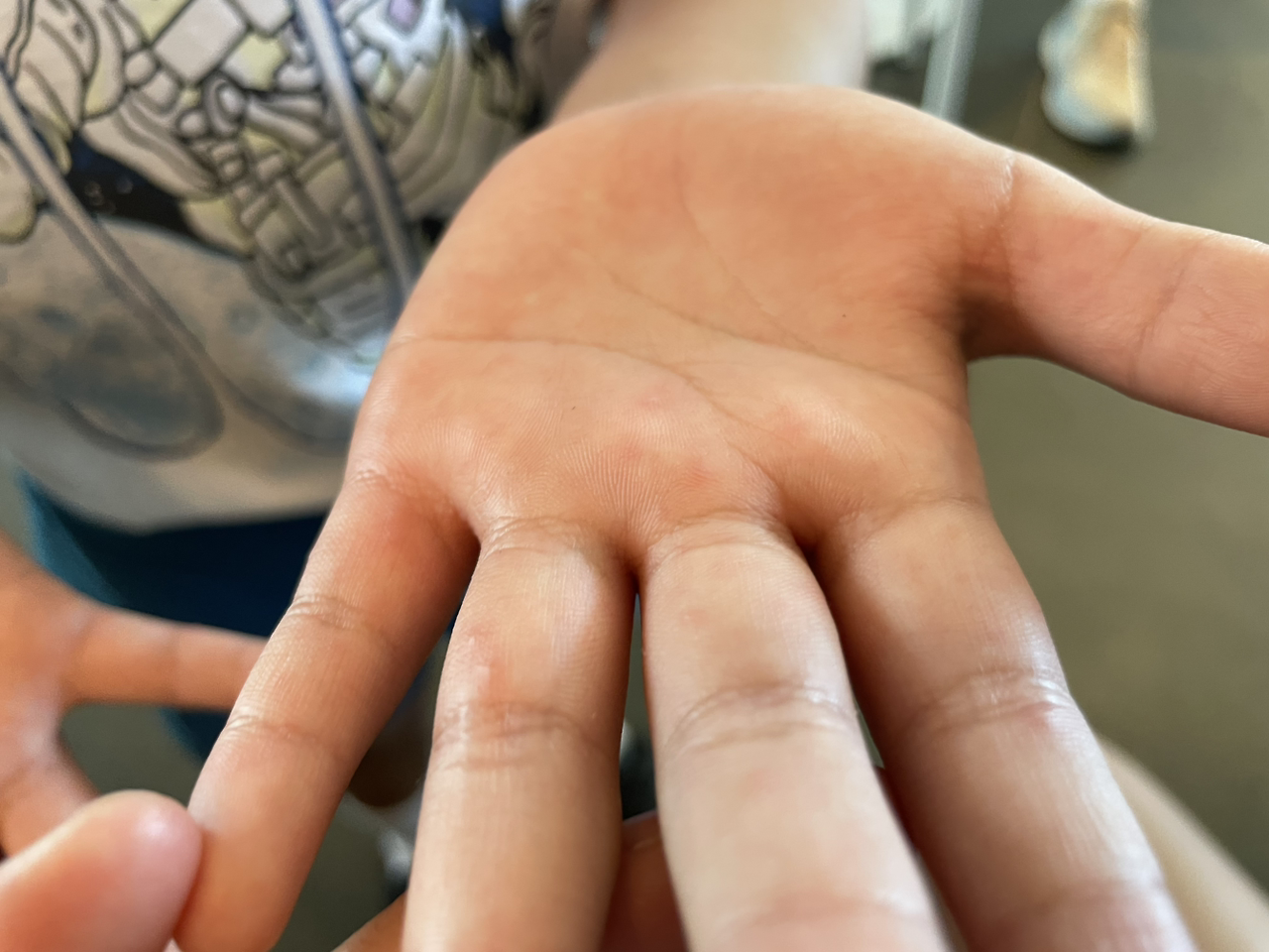 첫째 아이가 손이랑 발에 뭐가 이상하다고 했다.