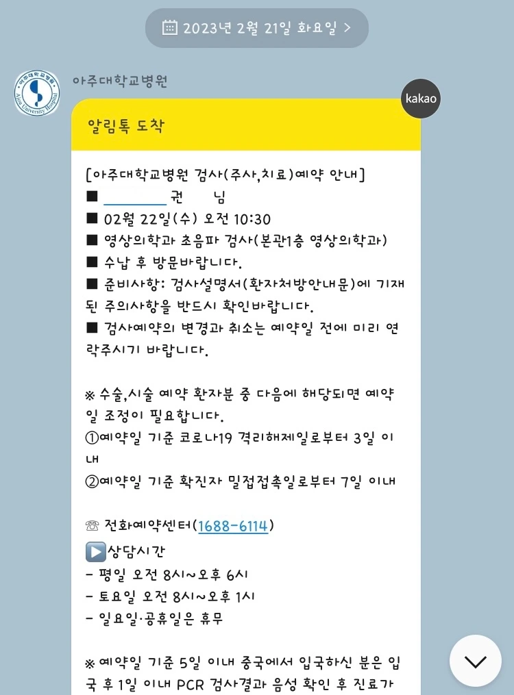 아주대학교병원 일정은 모두 취소했다고 생각했다.