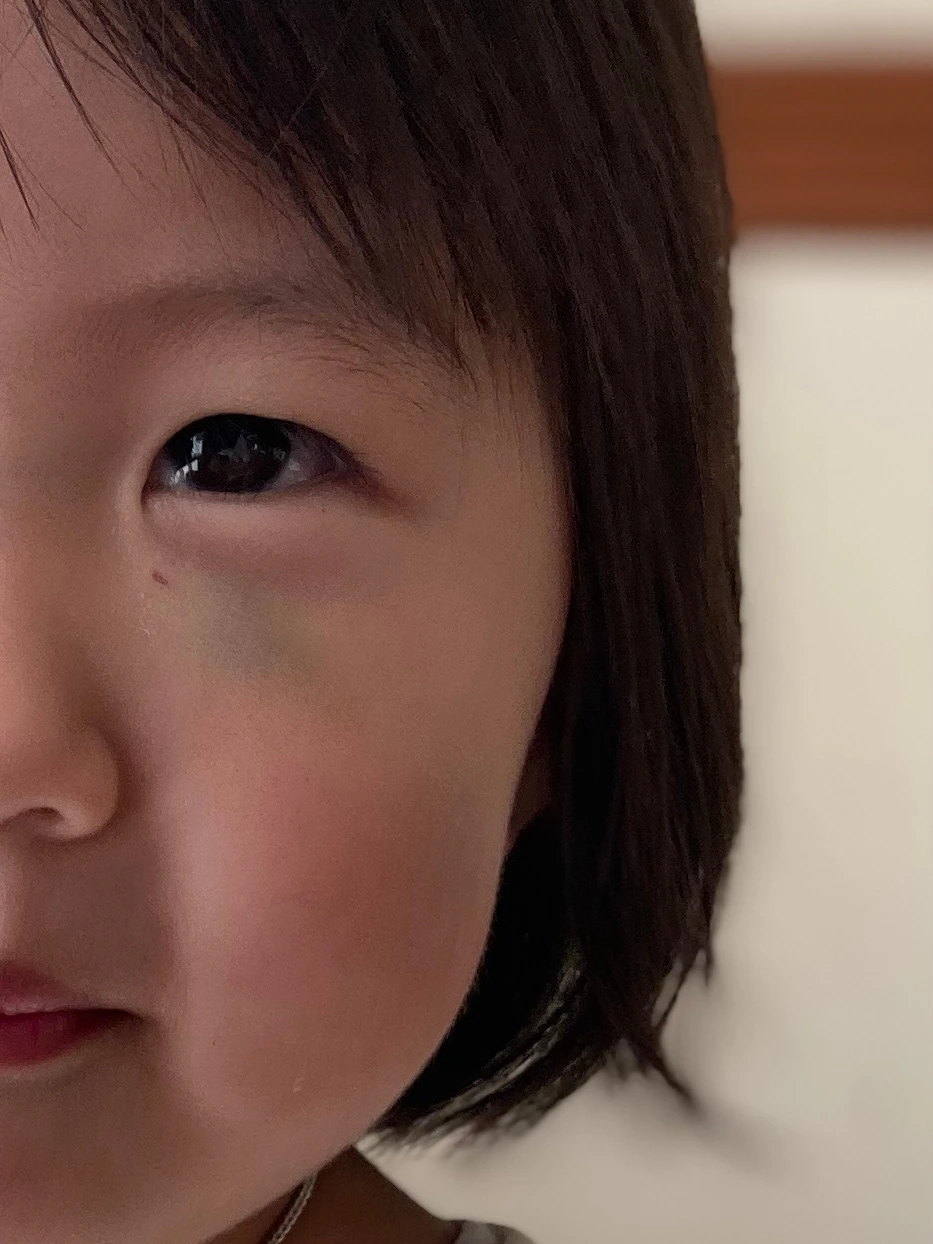선생님은 아기의 눈 밑을 직접 만져보시고,