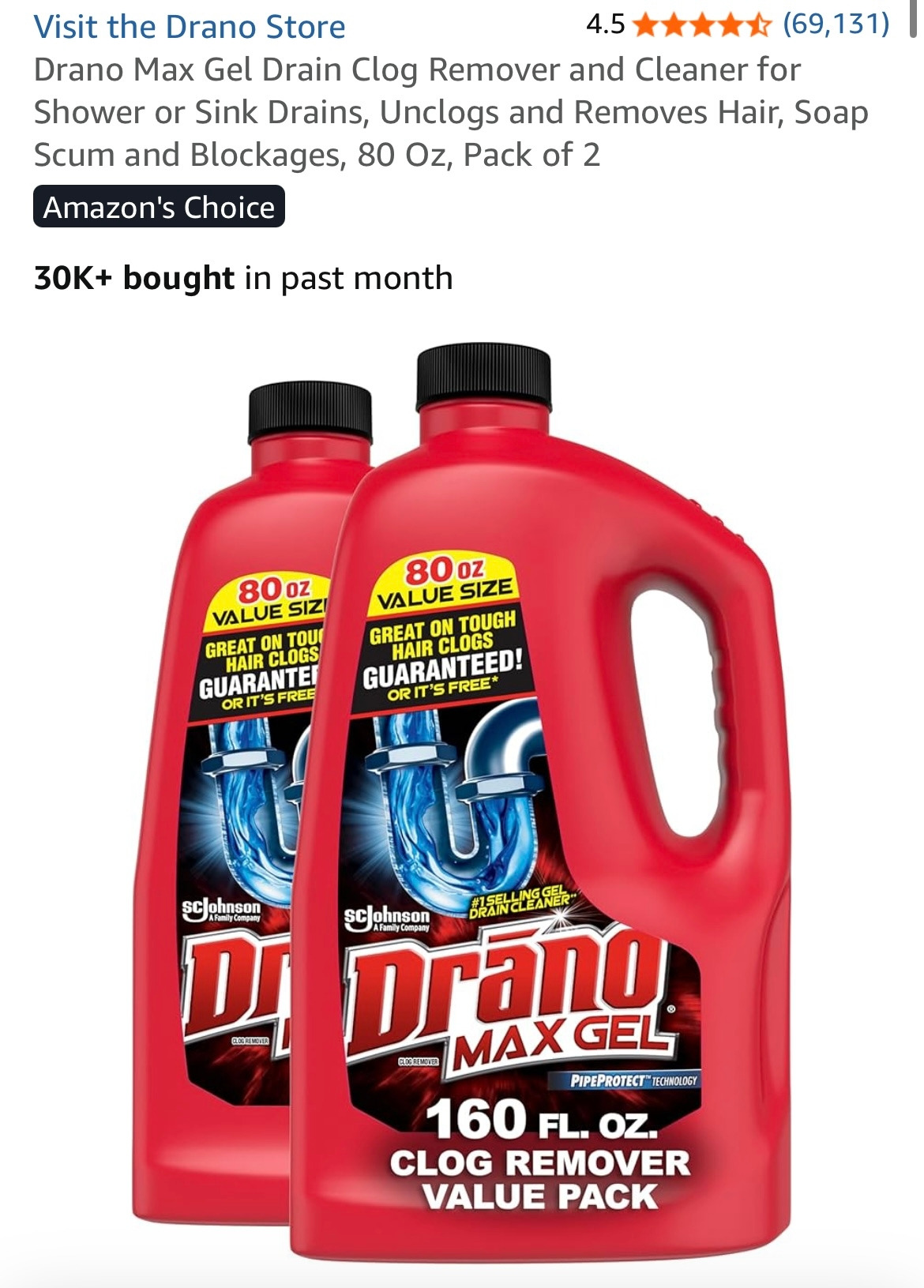 자기 전에는 Drano Max Gel을 하수구에 붓는다.
