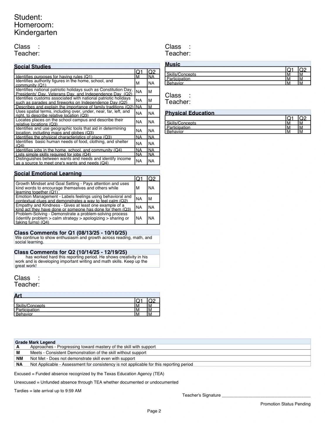 미국 유치원 성적표는 점수나 등수가 아니라, 아이의 발달 상태를 관찰해 표시하는 평가표다.