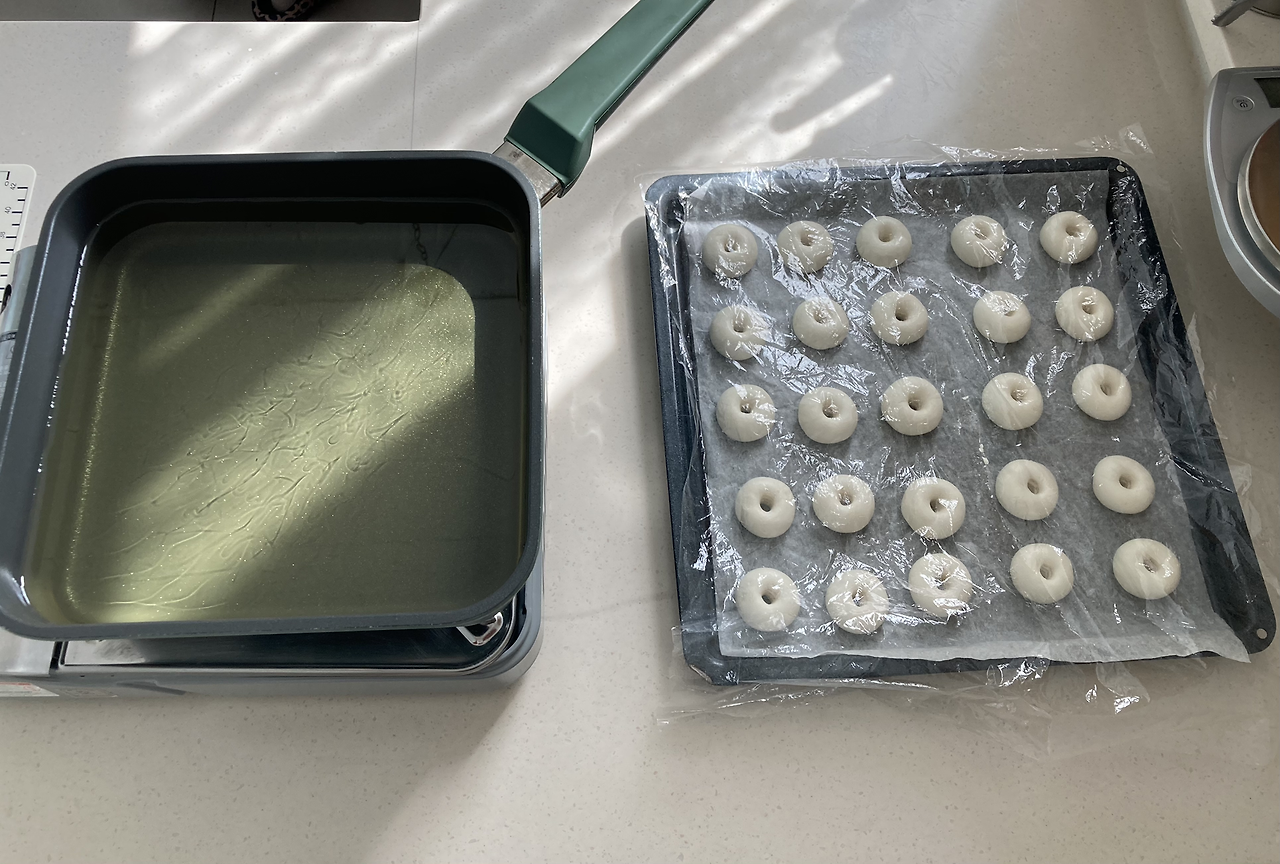 20분 후, 한 개씩 꺼내서 트레이에 올려둔다. 흐르는