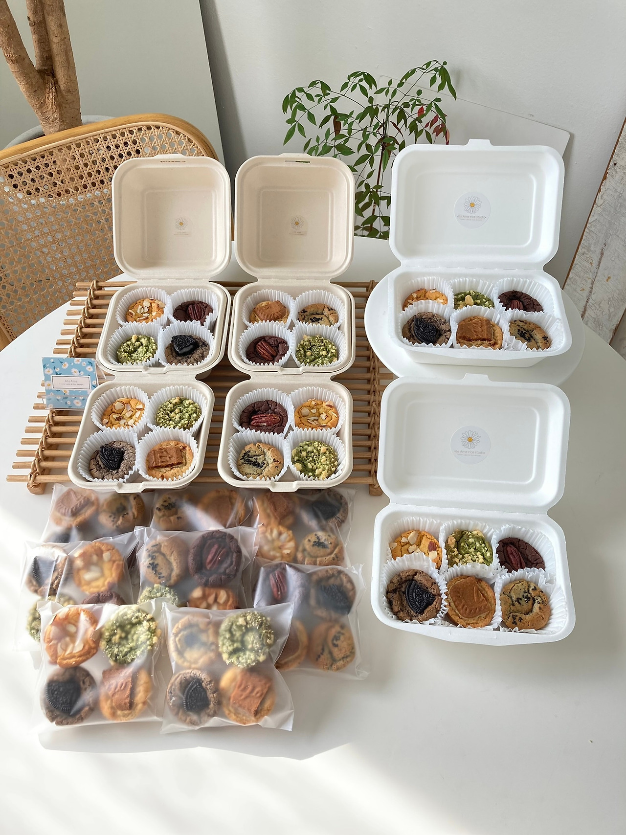 살짝 식히고 포장용기에 담는다. 원하는 구성으로 담아주면 끄읕-