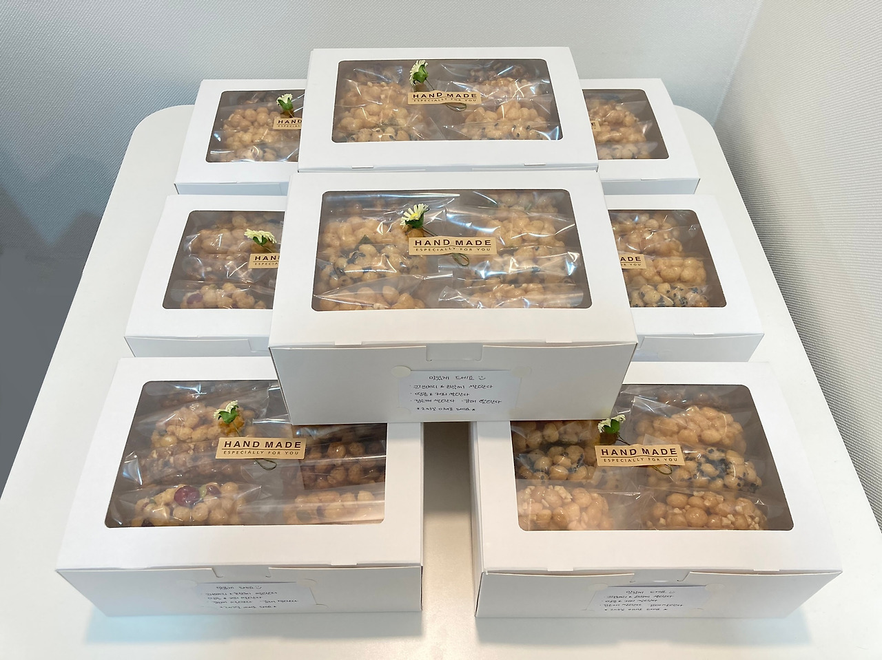 포장까지는 2-3시간이 더 걸렸다. 중간에 아가들 밤잠 재운다고 조금 쉰 덕분에 행복하게 포장하고 마무리할 수 있었다. 부디 받으시는 분들 그리고 드시는 분들께서 맛있게 드셔주시길 바란다. 나의 정성과 노력이 잘 전달되기를~