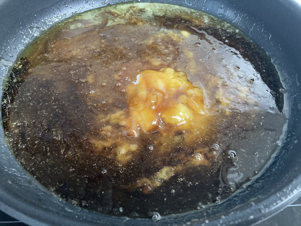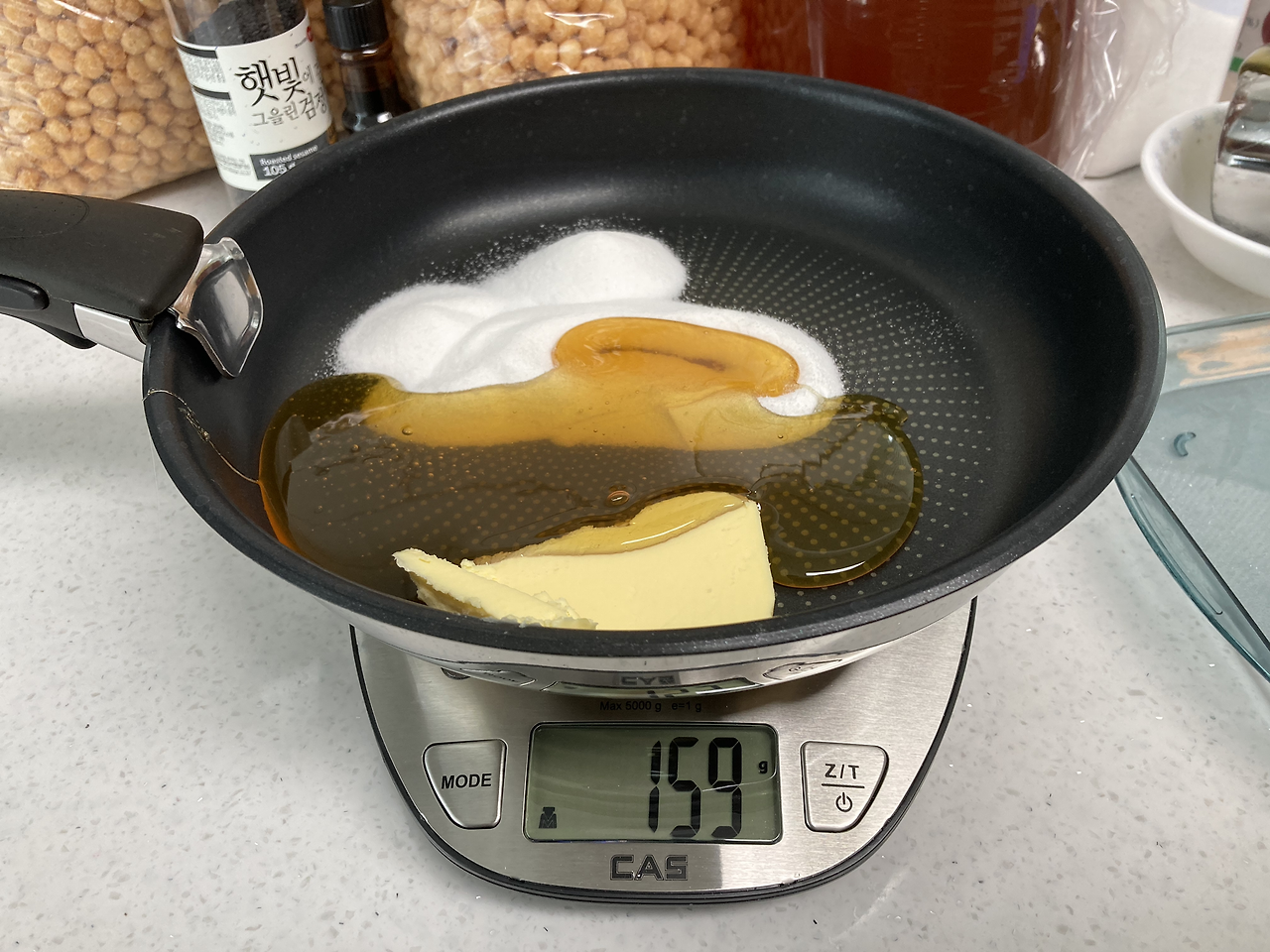 아주 천천히 녹고 있는 조청+설탕+버터.