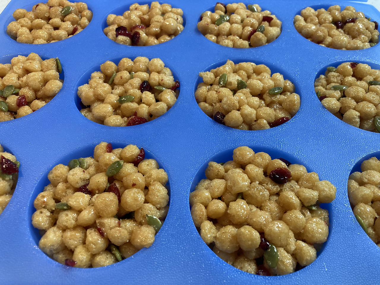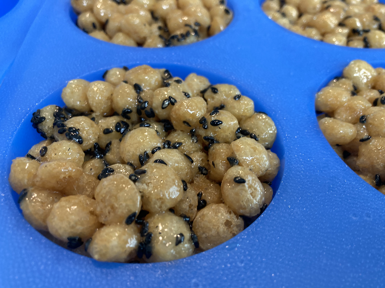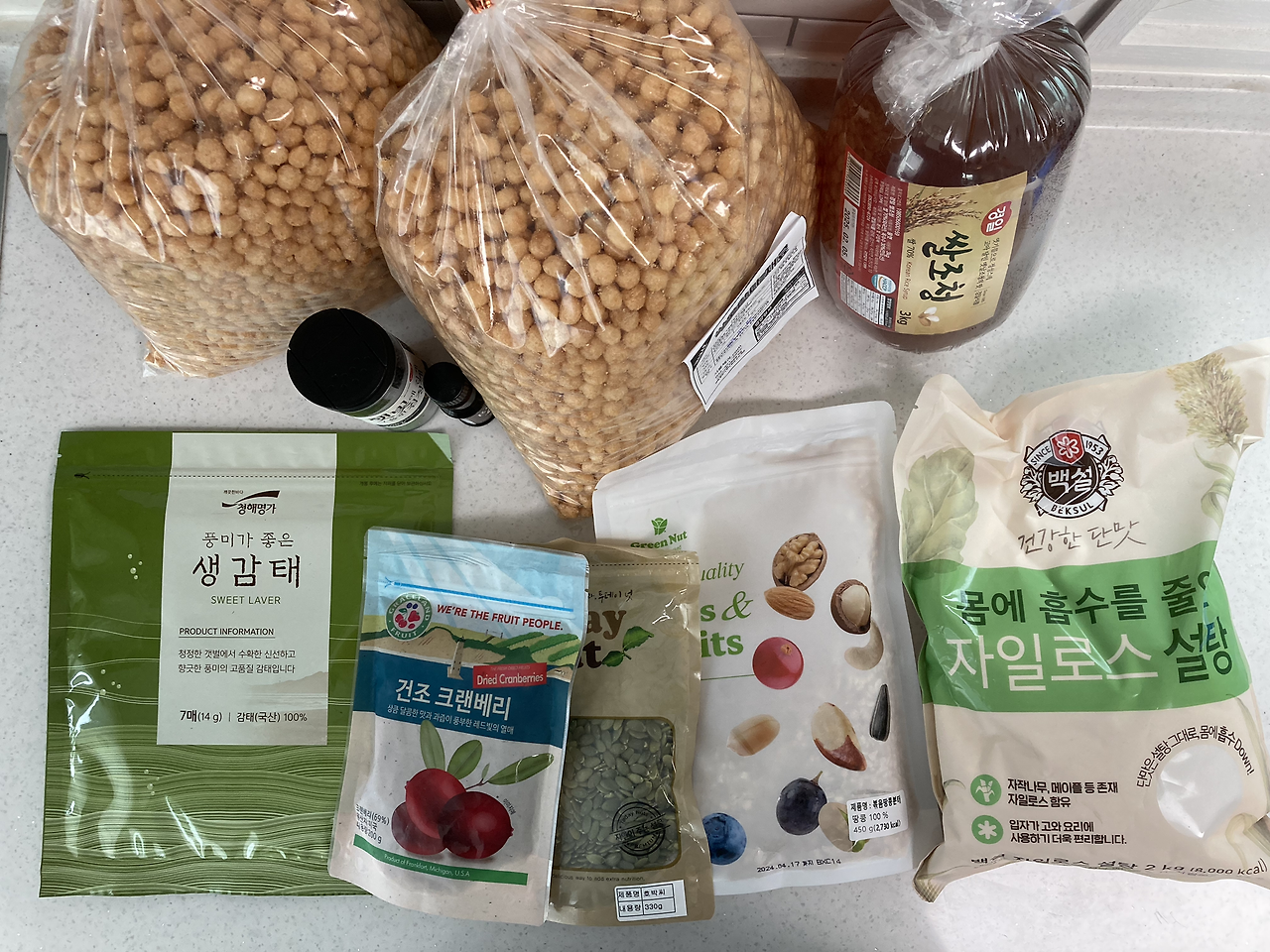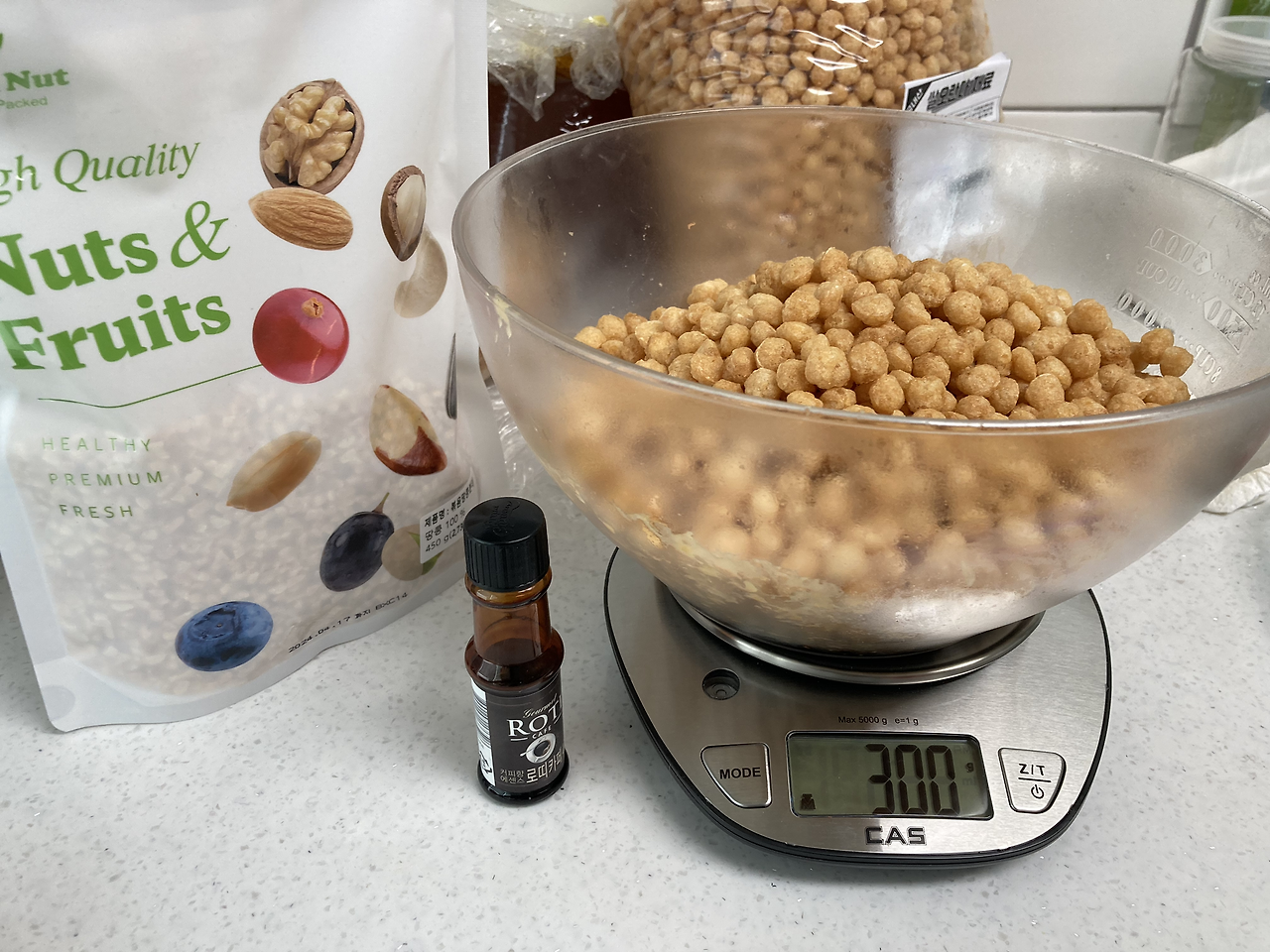 설탕 빼고 새로 다 주문한 재료들이다. 국내산 쌀알알이, 쌀조청, 검은깨, 로티카페, 감태, 크랜베리, 호박씨, 땅콩분태 그리고 오란다 원형 실리콘 틀.