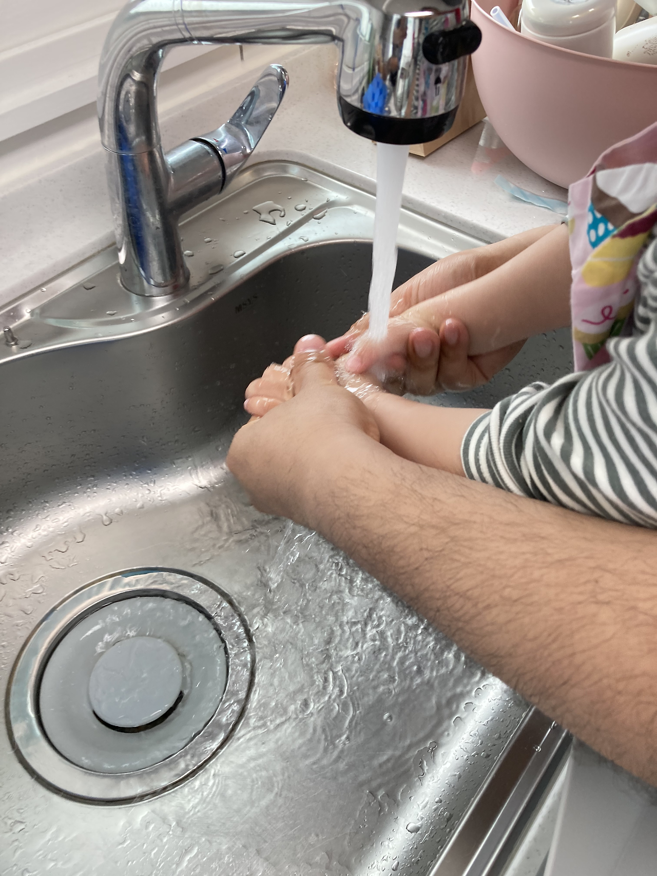 손에 뭐 묻었다고 아빠랑 또 손 닦는 아들. 이제 시작인데 벌써 몇 번째인지 모르겠다. 깔끔쟁이 아들~