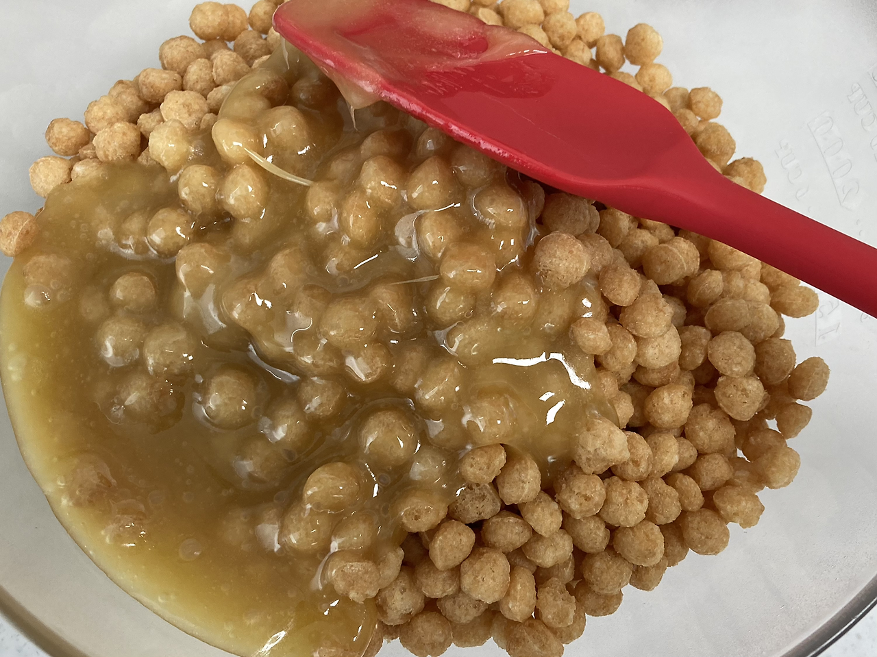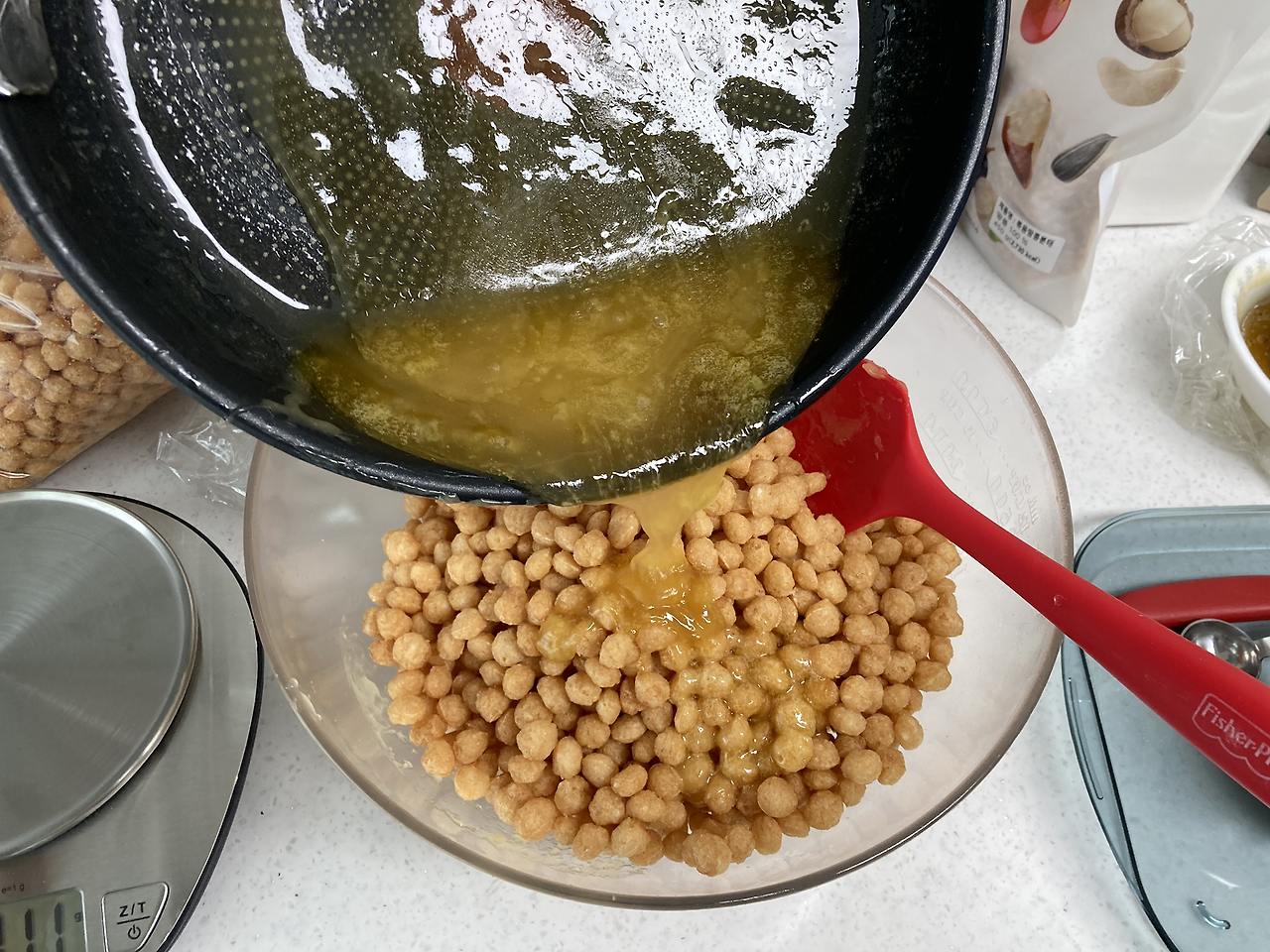 시럽을 볼에 부었다. 그런데 음... 시럽이 생각보다 굳은(?) 느낌이다. 이상했지만 일단 버무렸다.