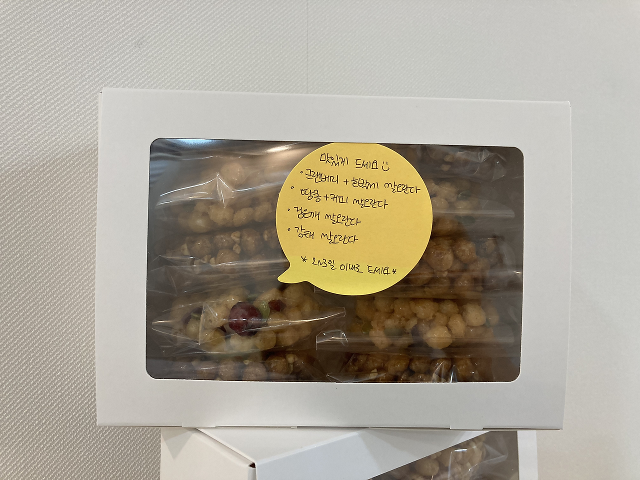 클래스에서 배웠던 구움 찰떡이 너무나도 맛있어서 이걸로 가족 및 지인분들께 만들어서 선물하고 싶었지만.... 준비물인 오븐을 사기엔 아직 배보다 배꼽이 더 큰 것 같아서 과감히 포기하고! 쌀오란다로 결정했다! 누구에게 선물할까 고민해 보니: 부모님, 남편 회사팀(총인원 45명), 남편 회사 동료, 남편 군대 동료, 남편 고등학교 친구. 쌀오란다는 90개 정도. 이 정도면 선물하고 나서 뿌듯하겠다 싶었다.