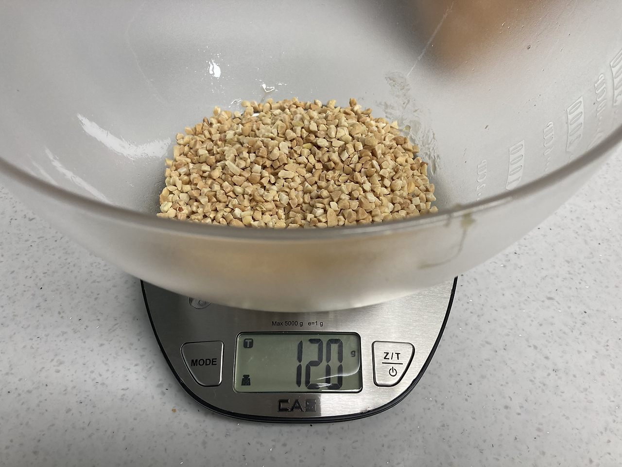 호박씨도 계량하고 쌀 알알이도 계량한다. 알알이는 양이 많으니 큰 국자를 사용했다.