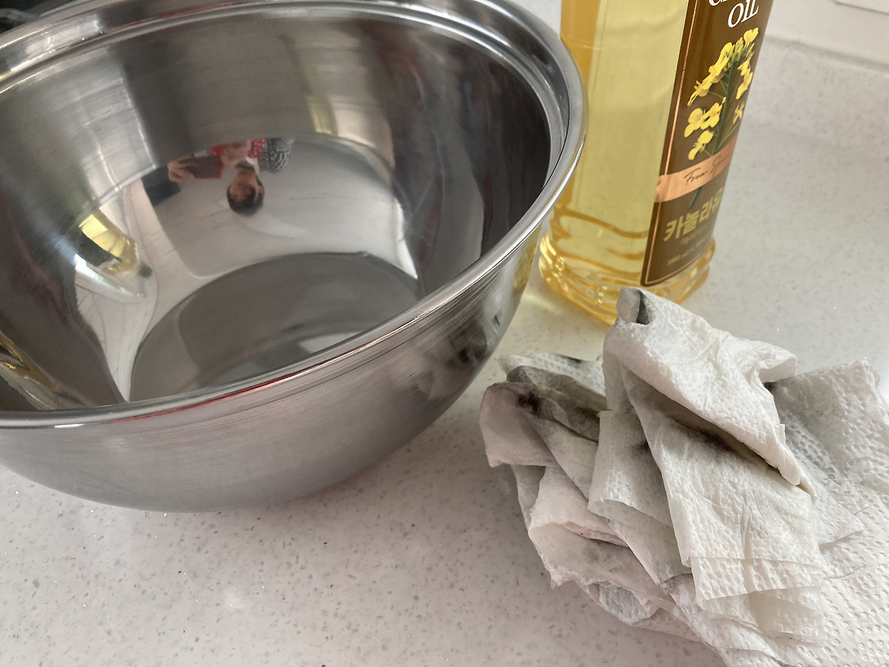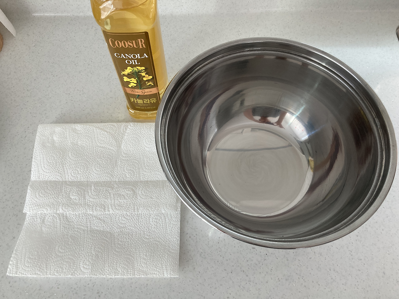 벌써 몇 번째 복습 중인데도 여전히 도구들 준비가 다 되지 않았다. 에휴... 난생처음 시작해보는 일이니 그럴 수도 있지 하며 오일과 키친타월을 꺼낸다.