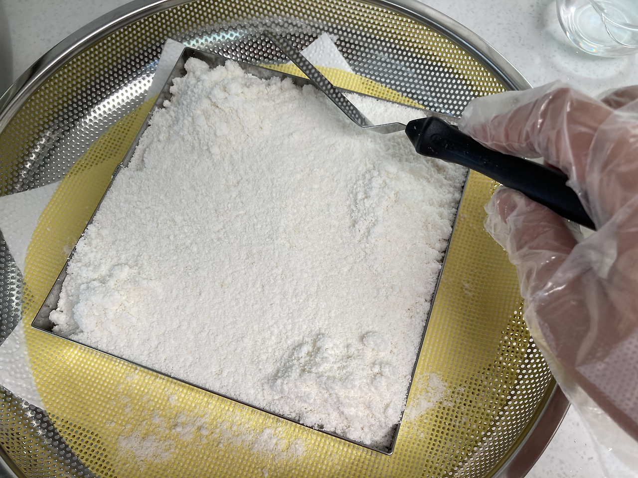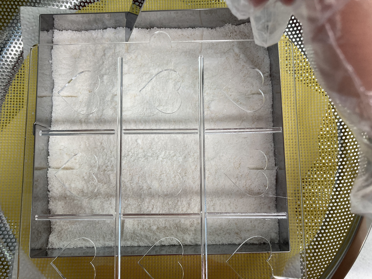 10) 무스링에 반정도 쌀가루 채운 후 칼금내주기