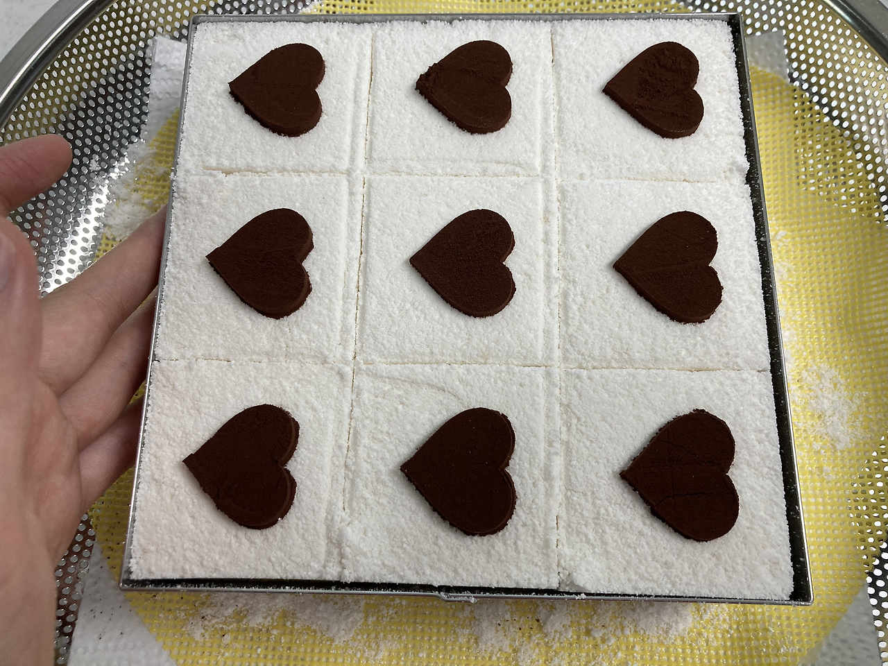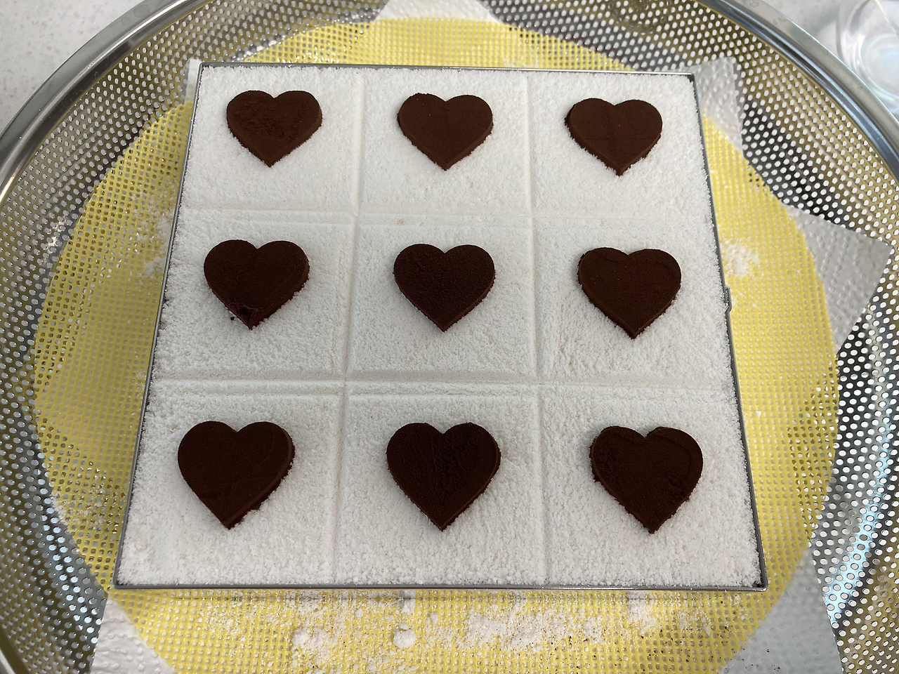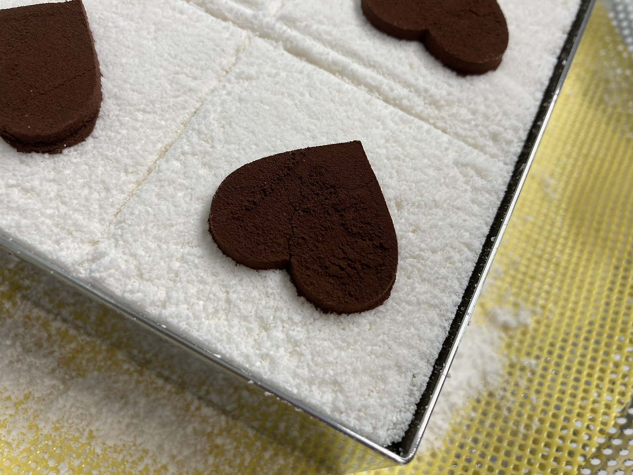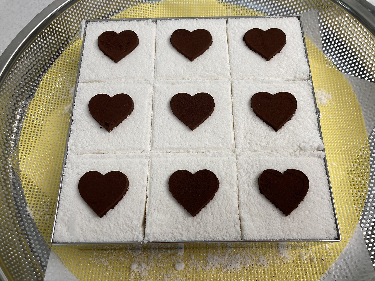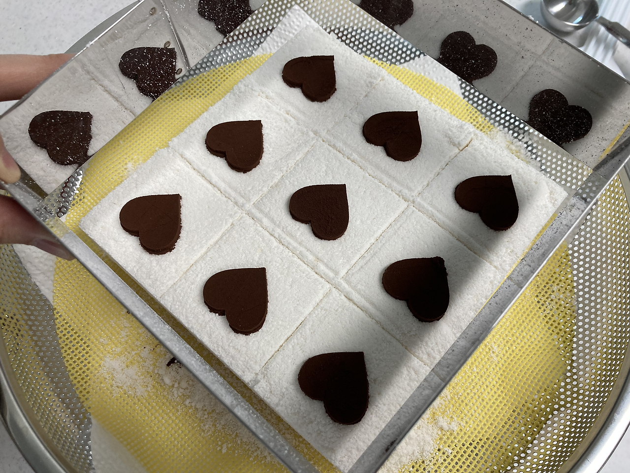 15) 하트 칼금판을 올려두고 코코아 가루 뿌리기