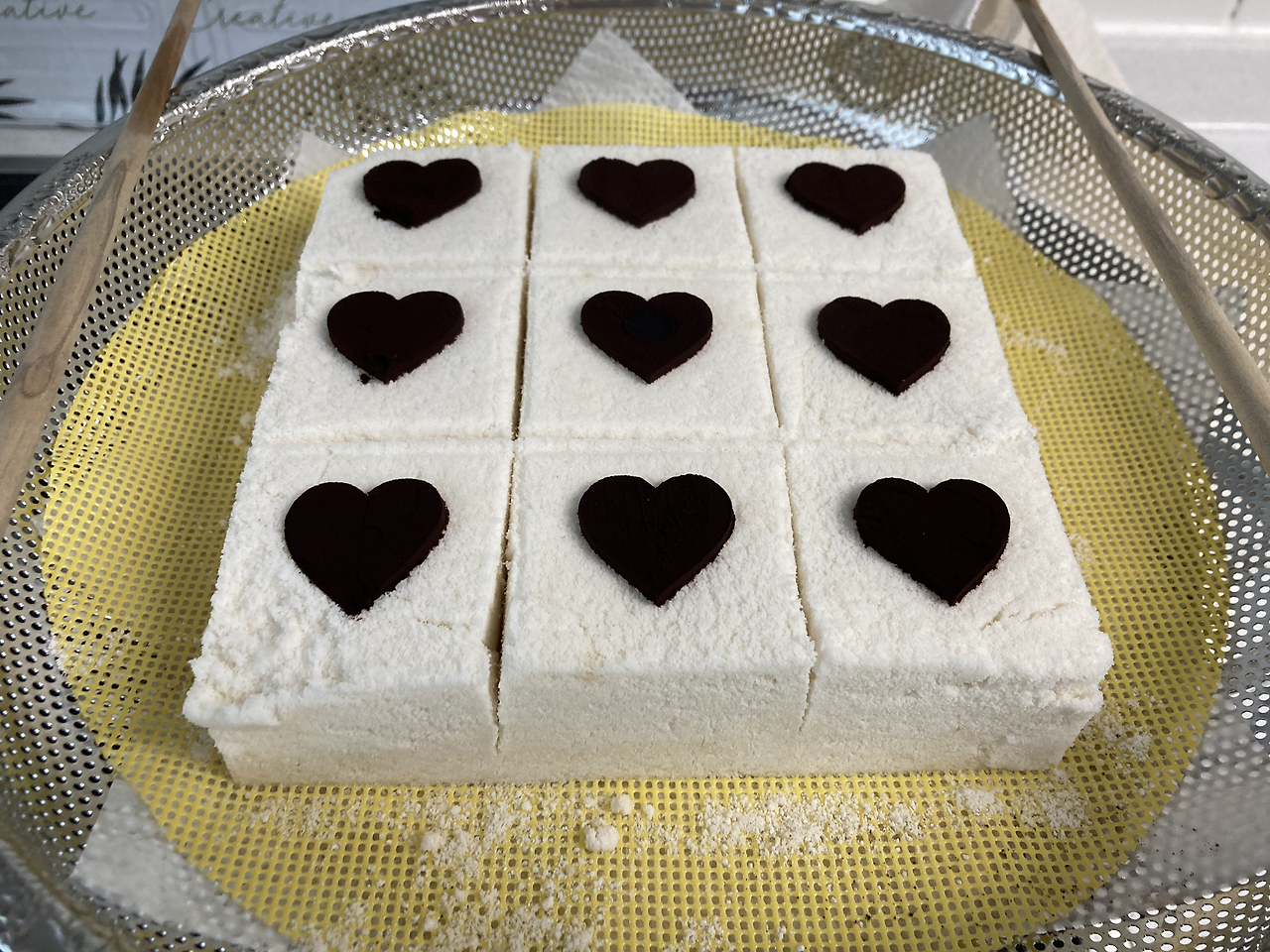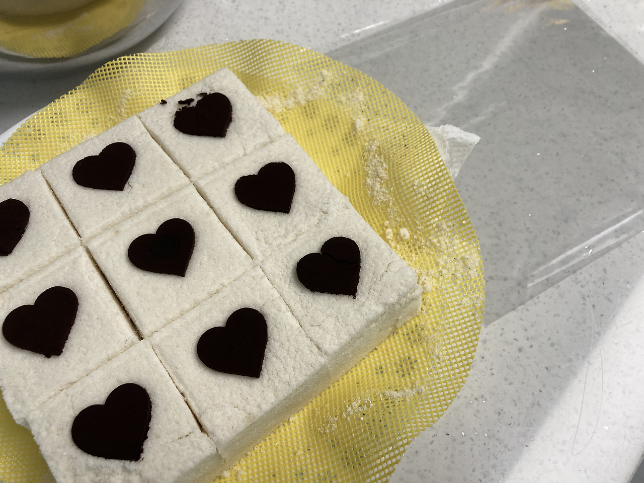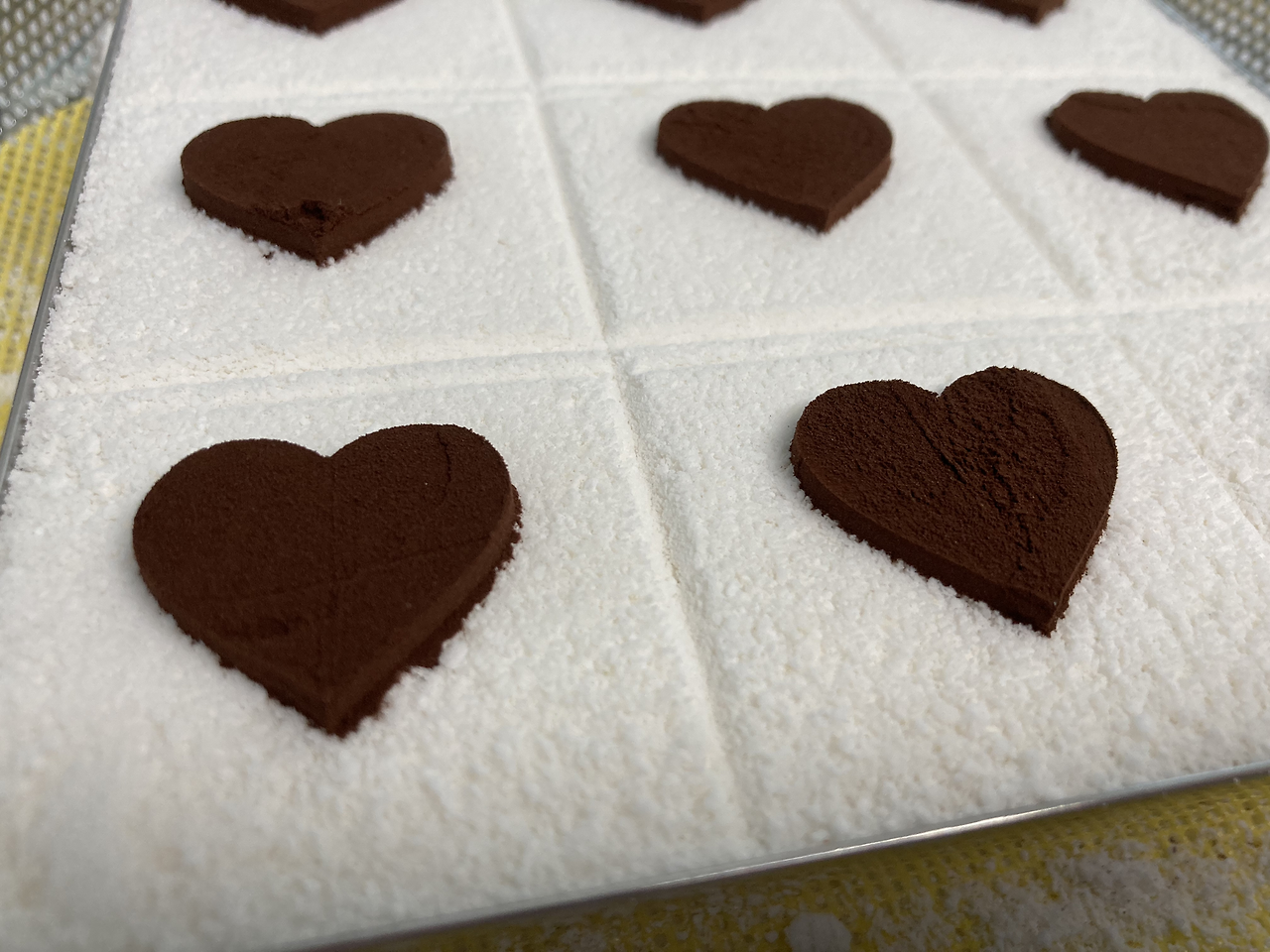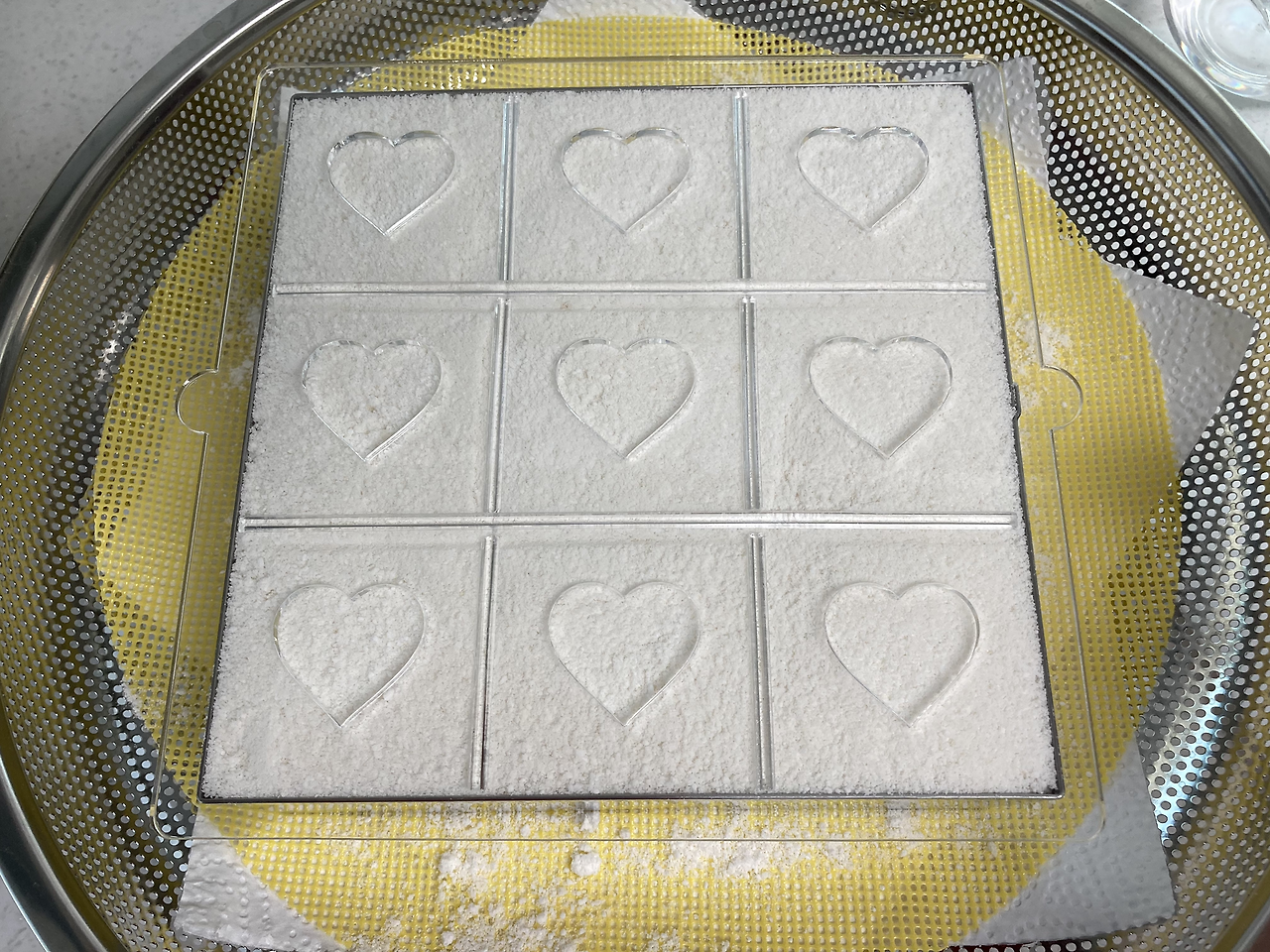 15) 하트 칼금판을 올려두고 코코아 가루 뿌리기