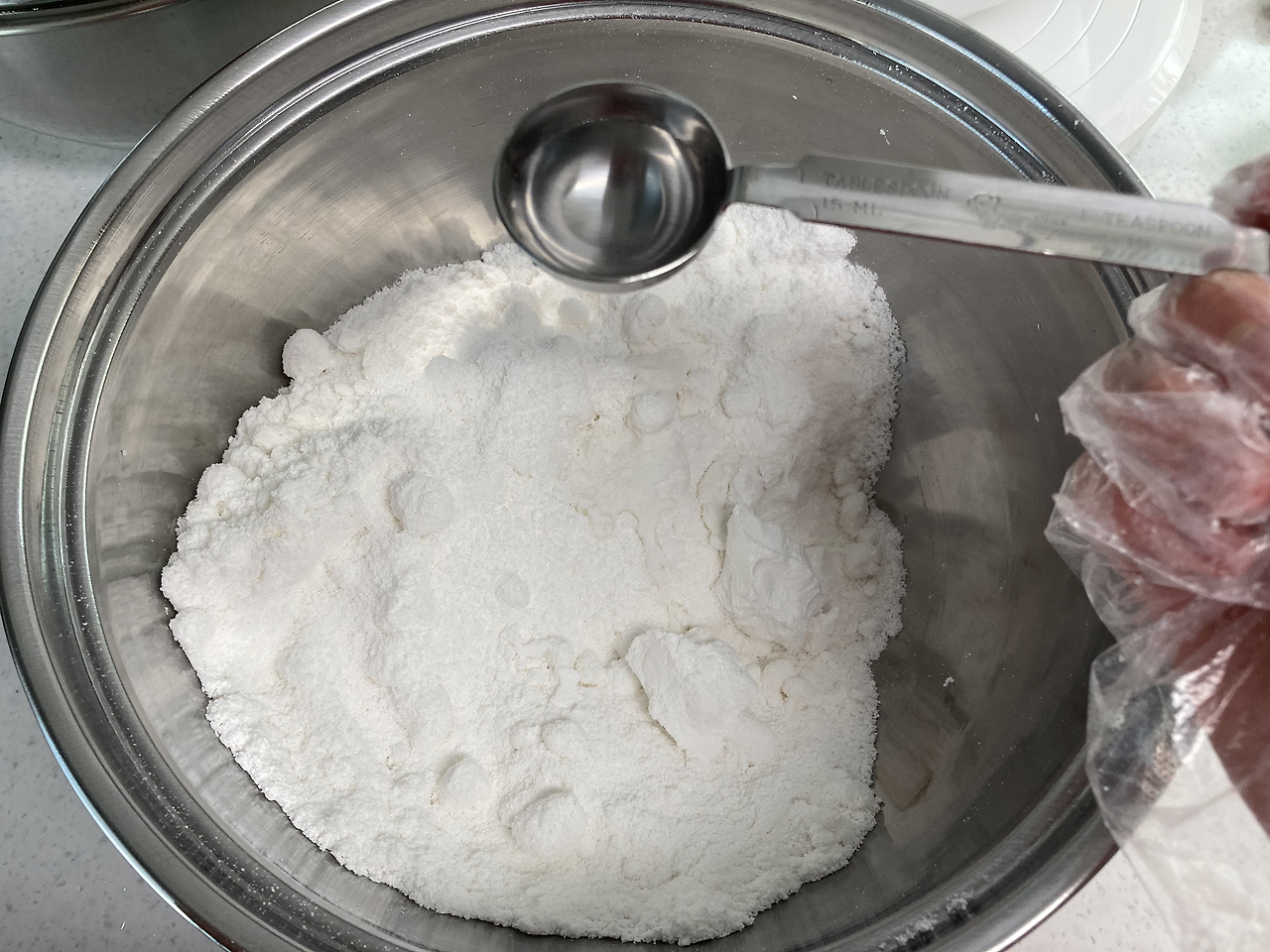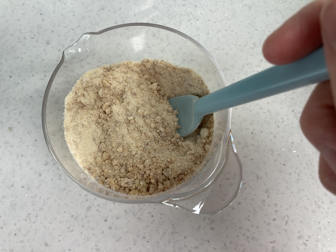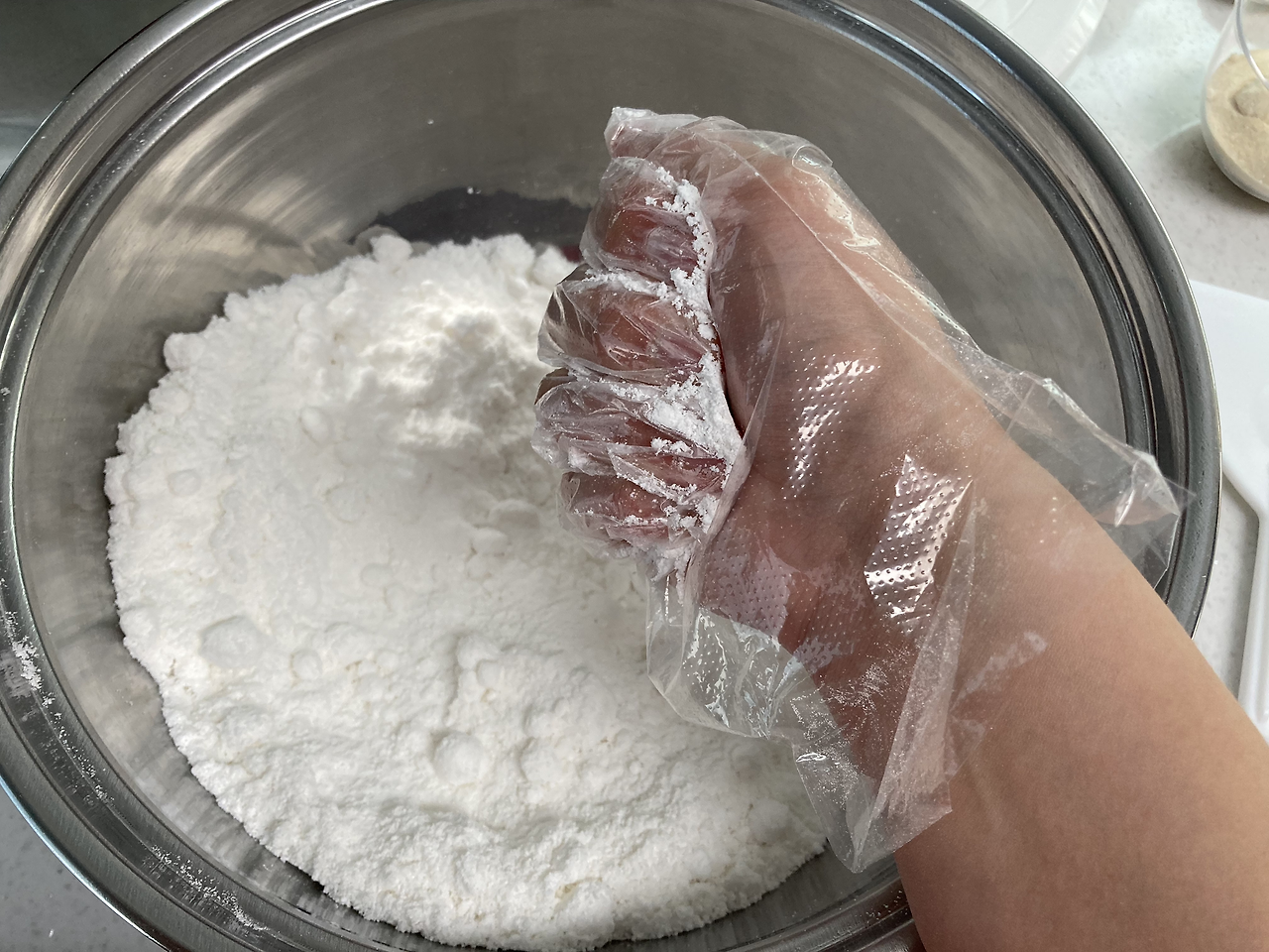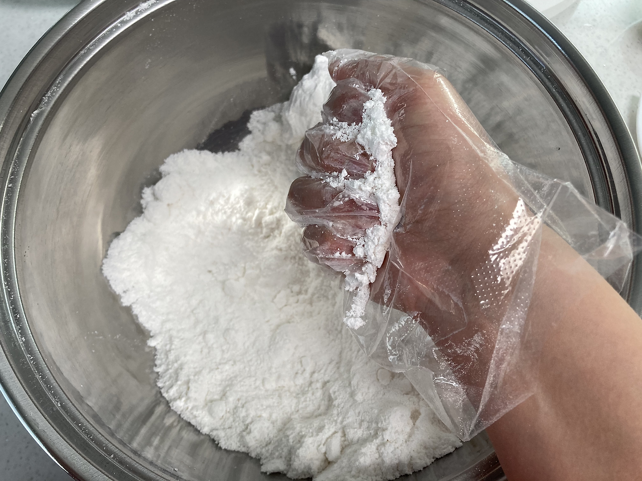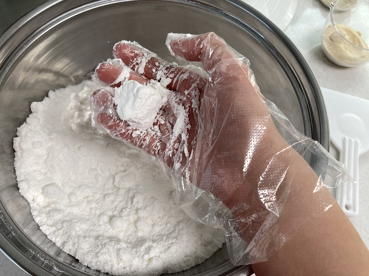 8) 설탕을 넣을 차례. 쌀가루에 넣은 후 골고루 믹스