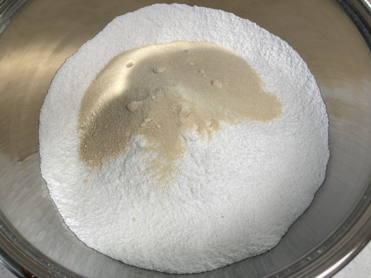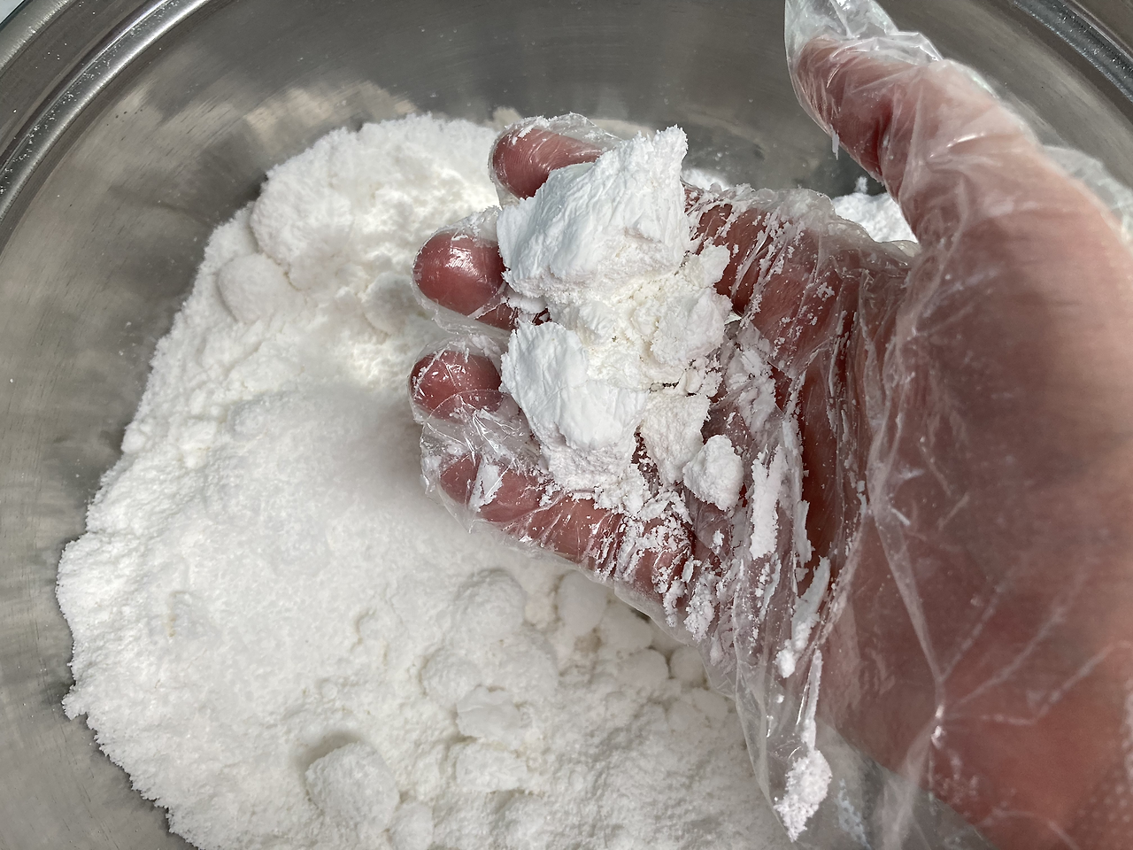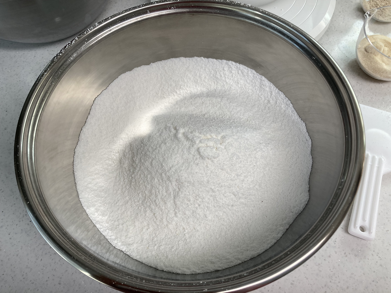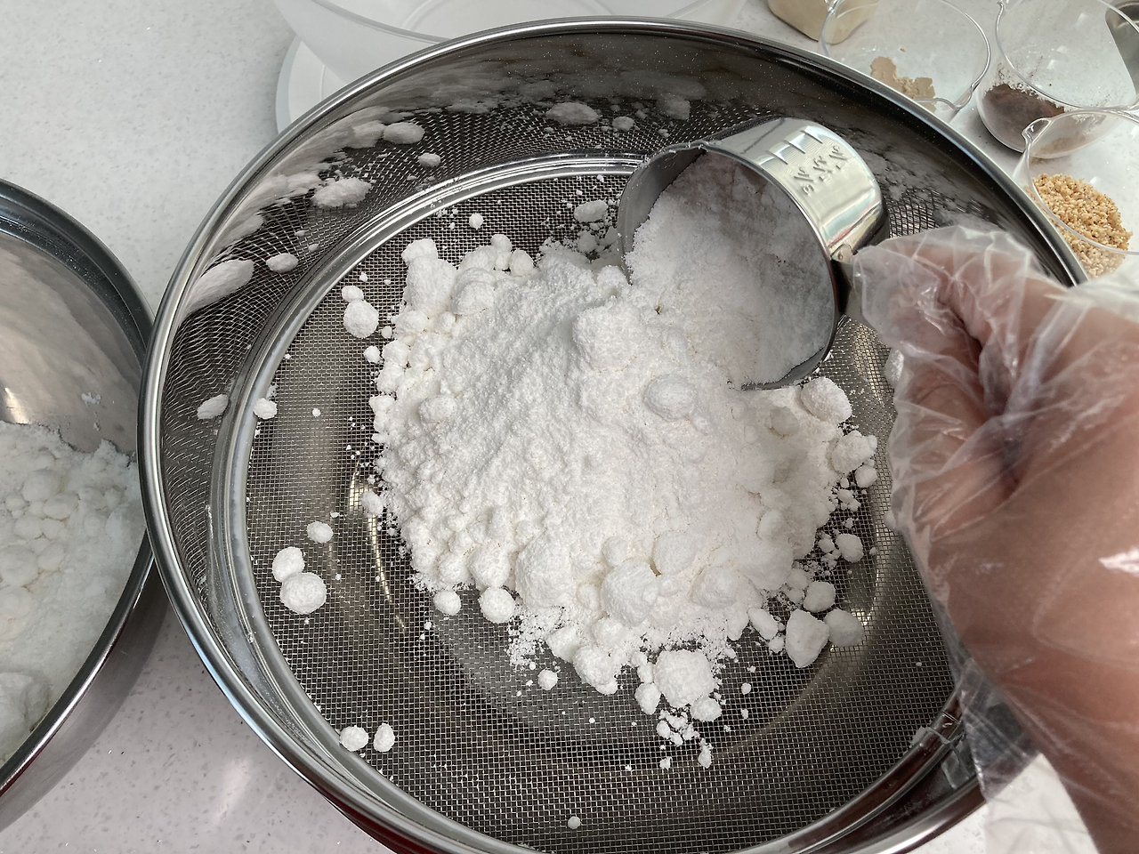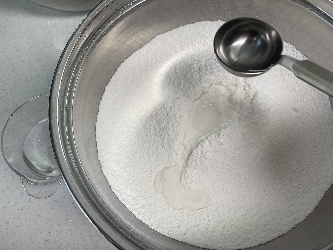8) 설탕을 넣을 차례. 쌀가루에 넣은 후 골고루 믹스