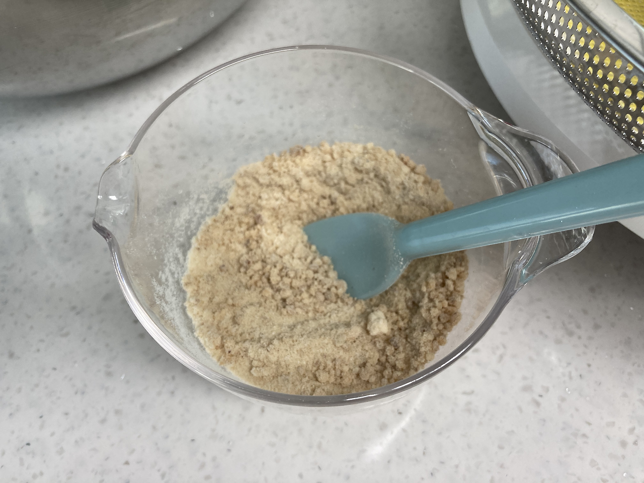 7) 쌀가루에 설탕 넣기 전, 꿀필링을 준비한다 (재료들을 한 곳에 넣어 섞어주면 끝)