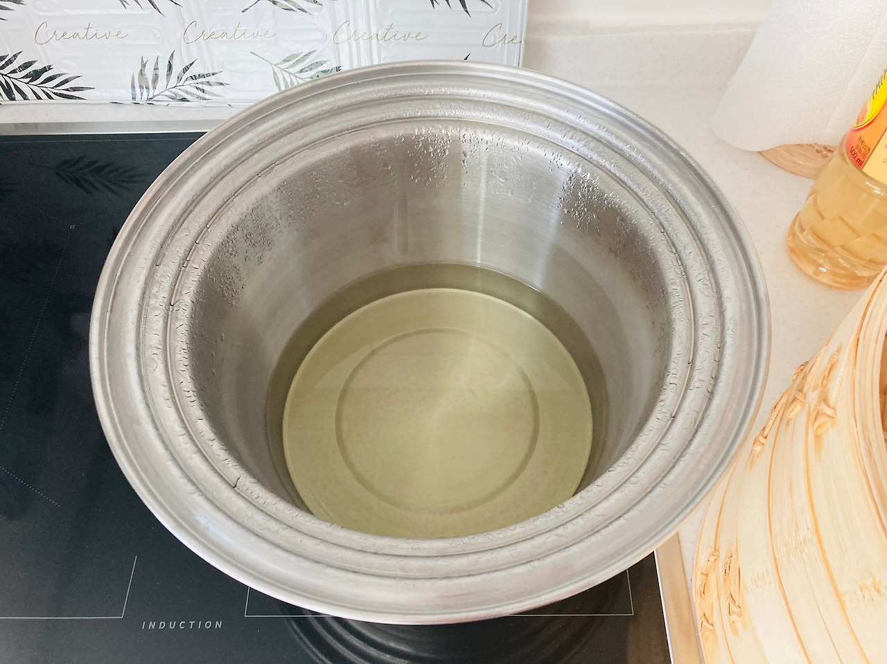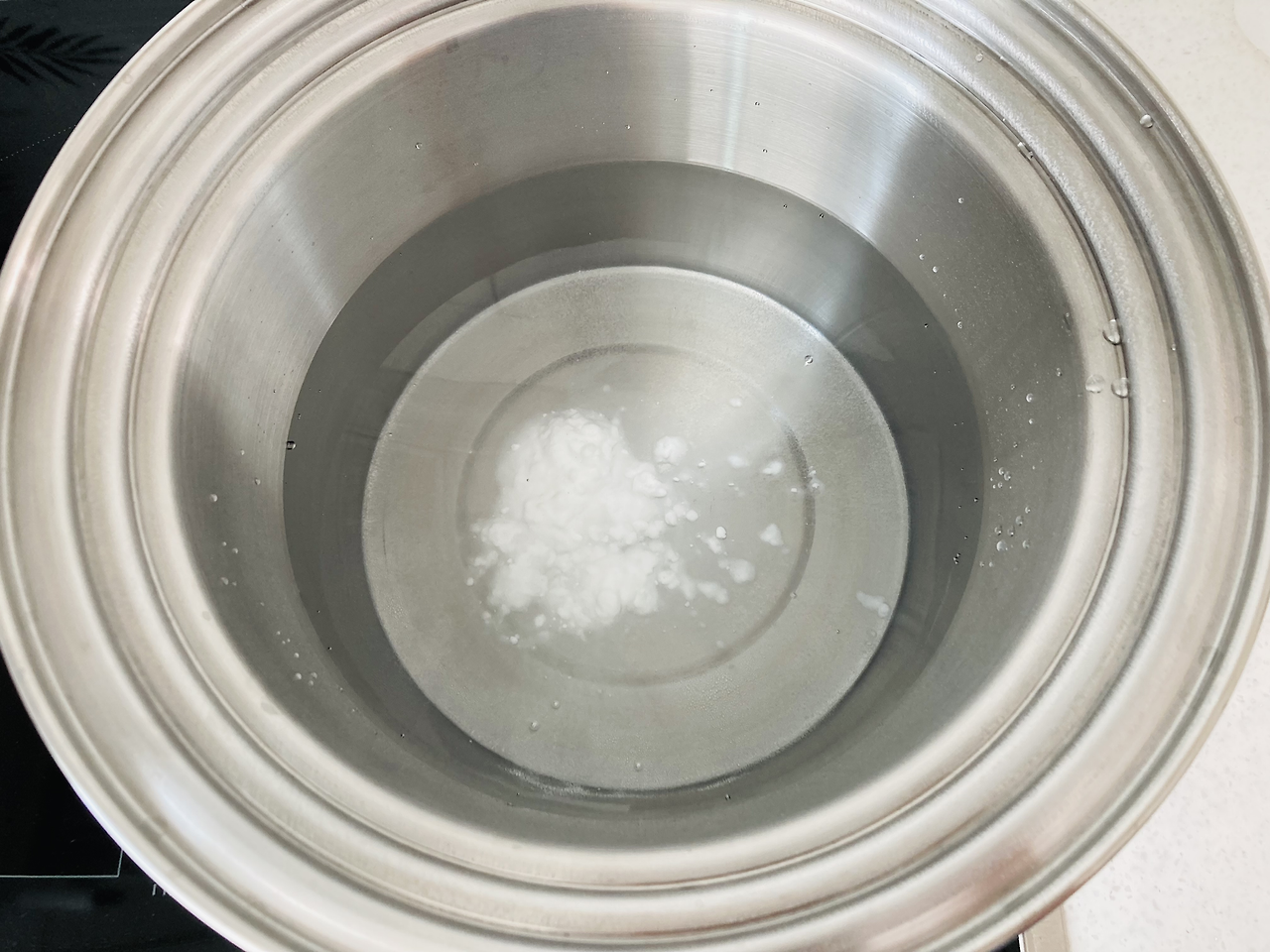 2. 물솥에 물 + 식초 2T + 베이킹소다 2T 넣기