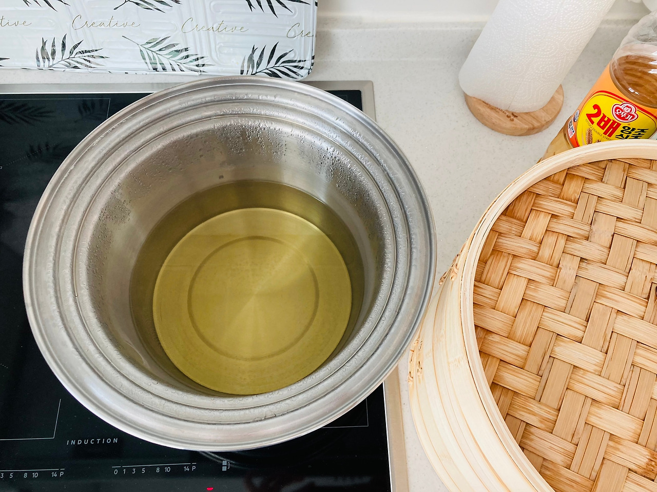 1. 대나무찜기가 쏘옥 들어가는 큰 냄비나 들통을 준비한다