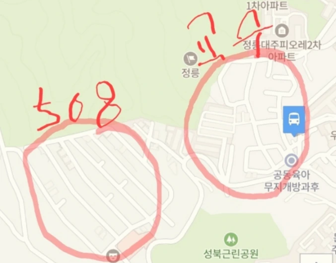 북악스카이웨이 주변으로 군부대 시설들을 종종 볼 수 있다. 1968년 1월21일 김신조 간첩 사건으로 더 강화되었다고 한다. 또한 대사관저가 몰린 이유는 차로 10분 거리인 청와대가 있기 때문이다. 덕분에 인적이 드문 동네여도 곳곳에 경비초소가 있어 안전한 동네이기도 하다. 1162번 버스는 정릉508단지의 유일한 교통수단이다. 입구와 출구가 동일한 동네 한 바퀴를 돌고 나온다. 정갈하게 줄지어진 다세대 주택들로 정릉을 바로 옆에 두고 위로는 북악스카이웨이를 둘러 메고 있다. 청량한 산내음과 바람 그리고 새들의 음율이 세련된 서울의 분위기를 빗겨간다. 북악산로1길 정릉508단지는 1960년대 정보부 직원들의 주거안정을 위해 조성된 주거단지로 형성되었다고 한다. 주변의 정릉과 군부대시설로 개발이 불가능한 곳이었는데, 근처 서울대학교 교직원을 위한 교수단지조성과 함께 허가된다.
