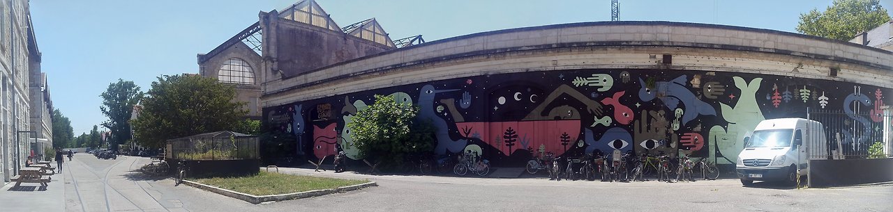 프랑스에서 유학중인 한 친구가 보르도에 가면 꼭 Darwin을 가보라고, 정말 재미있는 곳이라고 추천해주었다. 주변 풍경도 볼 겸 숙소에서 30~40분 걸으니 새로운 건물들이 지어지고 있는 곳을 지나 그라피티 담벼락을 발견할 수 있었다. 안쪽으로 들어서니 탁트인 공간에서 사람들이 여유롭게 차를 마시고 있었다.