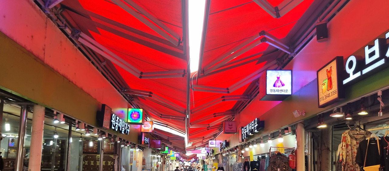 통일된 간판과 잘 포장된 도로, 통로 위를 나란히 덮고 있는 어닝이 정비사업을 한 번 마친 듯 깔끔하게 정돈된 모습이었다.