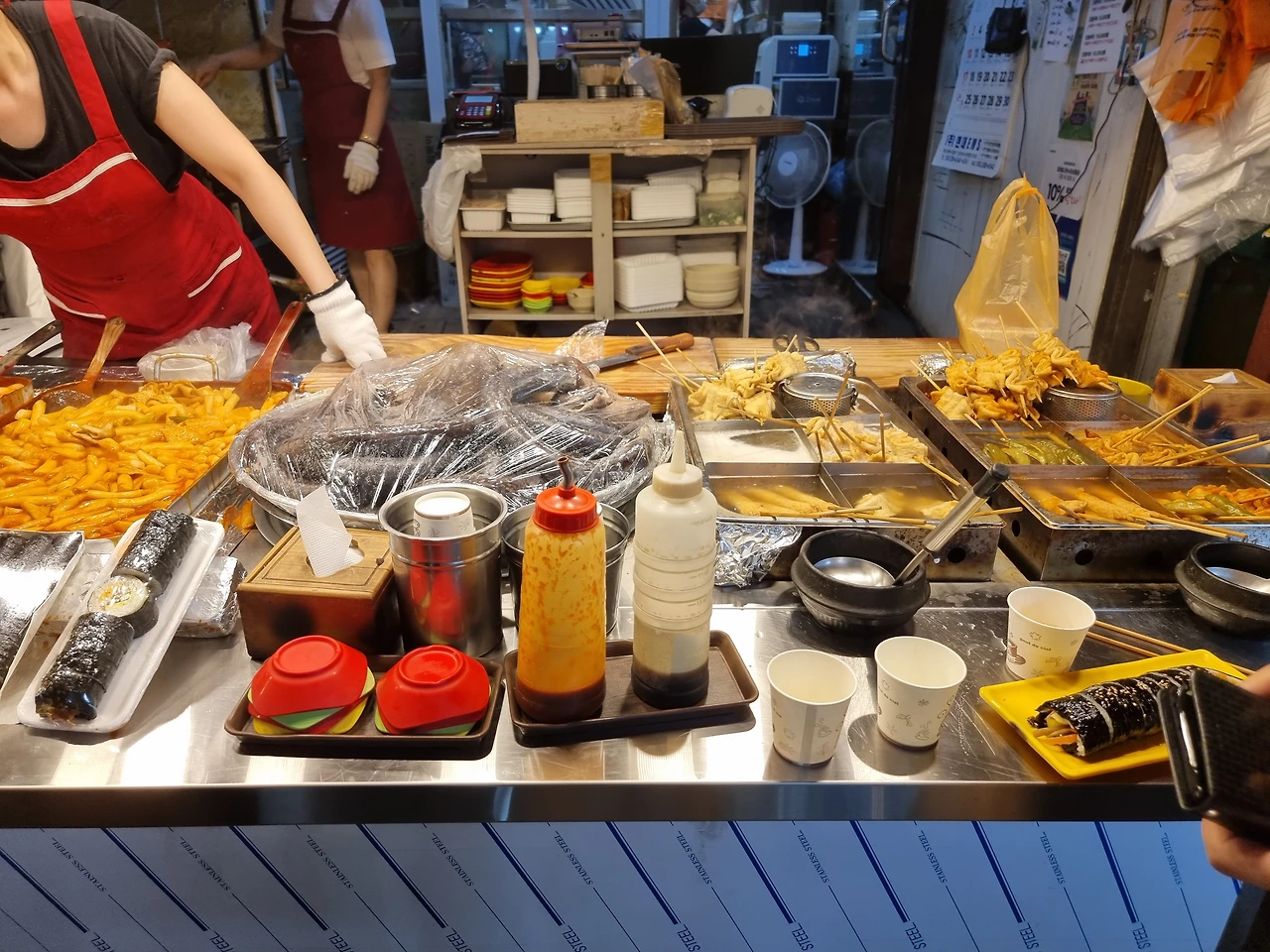떡볶이는 생각하는 적당히 달고 적당히 매운 딱 시장떡볶이 맛. 튀김은 오징어튀김을 추천한다.