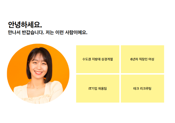 저를 간략한 키워드로 설명하자면 수도권 지방대 상경계열 졸업자, 6년차 직장인, IT기업 재직자,