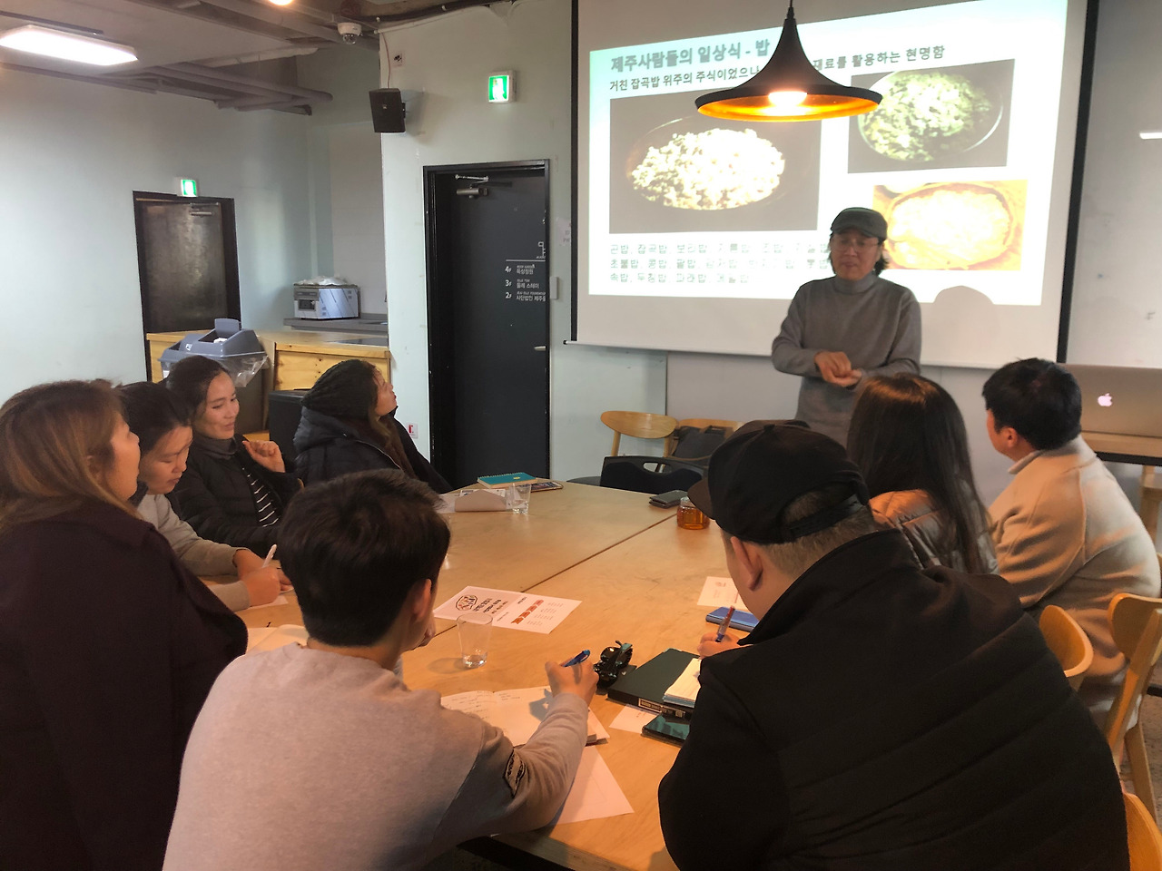 물론 처음엔 서먹서먹했다. 하지만 창업이라는 공통관심사를 가지고 있어서인지 빠르게 친해졌다. 요리를 하고 있고 창업을 앞둔 사람들을 대상으로 하는 프로젝트이기 때문에 따로 요리수업이 있는 건 아니었다. 다만 재료를 탐구하는 시간은 있었다. 제주도의 식자재를 따로 공부하고 양용진 님과제주향토음식보전연구원장님과 함께 오일장을 둘러보며 좋은 식자재를 골라보기도 했고 잘 운영되고 있는 레스토랑을 동기들과 함께 탐방하기도 했다. 사업계획서, 마케팅 등 실무적인 내용들도 배웠다. 크라우드 펀딩이나 브런치, 인스타그램 등은 잘 알지 못했던 분야였는데, 지금 이렇게 브런치를 쓰고 있는 걸 보면 배우는 건 정말 좋은 일이다.