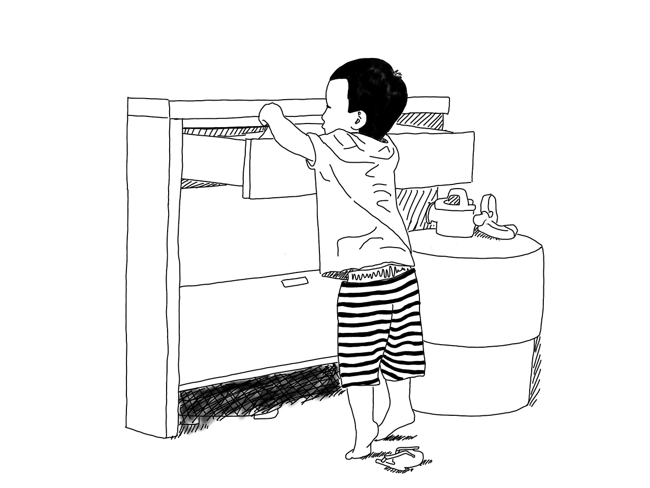 서랍부터 뒤지는 아들