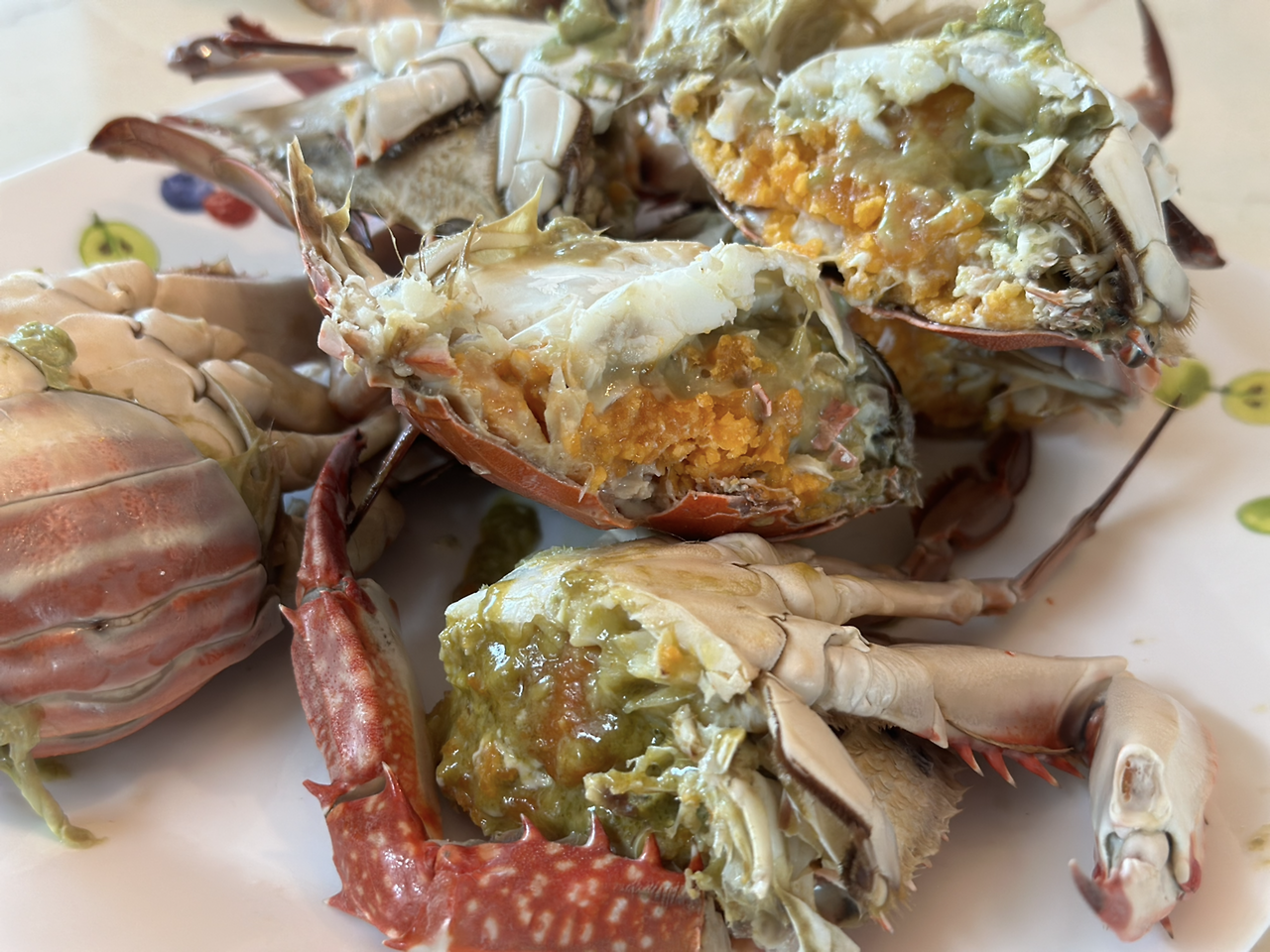 꽃게 철이라더니 알이 꽉 차 있다. 탱글탱글한 살을 열심히 파 먹는다. 짭조름하고 고소한 맛에 손이 멈추질 않는다. 얇은 다리까지 쪽쪽 빨아먹으며 전투적으로 꽃게를 먹었다. 아빠가 까주던 맛살같이 두툼한 대게만 먹어본 아이도 직접 파먹는 게 재밌는지 열심인 모습에 온 가족이 흐뭇하다. 손에 밴 비린내가 비누로 박박 문질러 두 세번 씻어도 가시질 않는다. 오랜만에 먹은 꽃게라 꼬릿한 냄새마저 기분 나쁘지 않다.