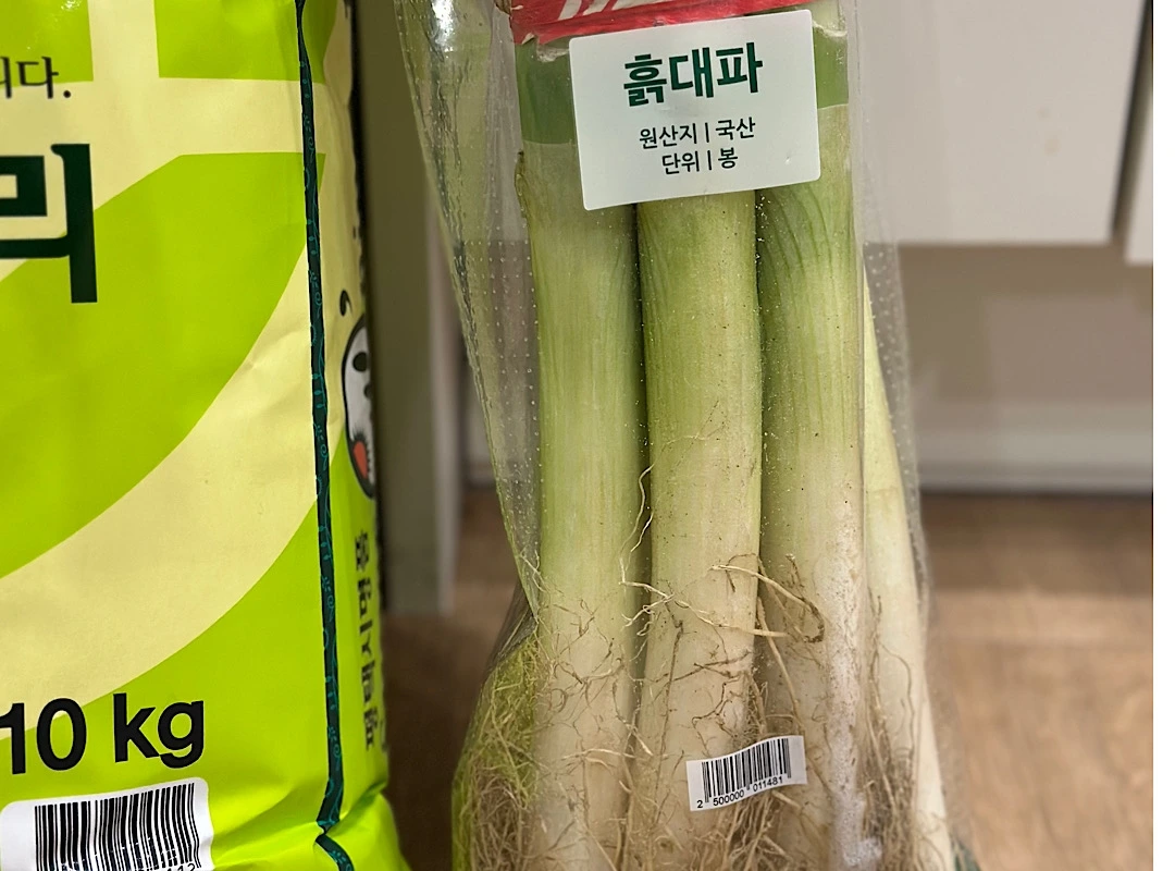 며칠 째 부엌바닥에서 대파, 쌀 포대와 대치중이다.
