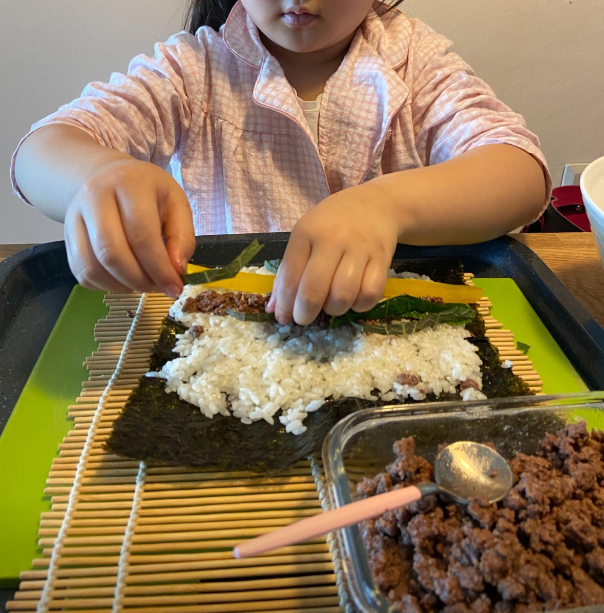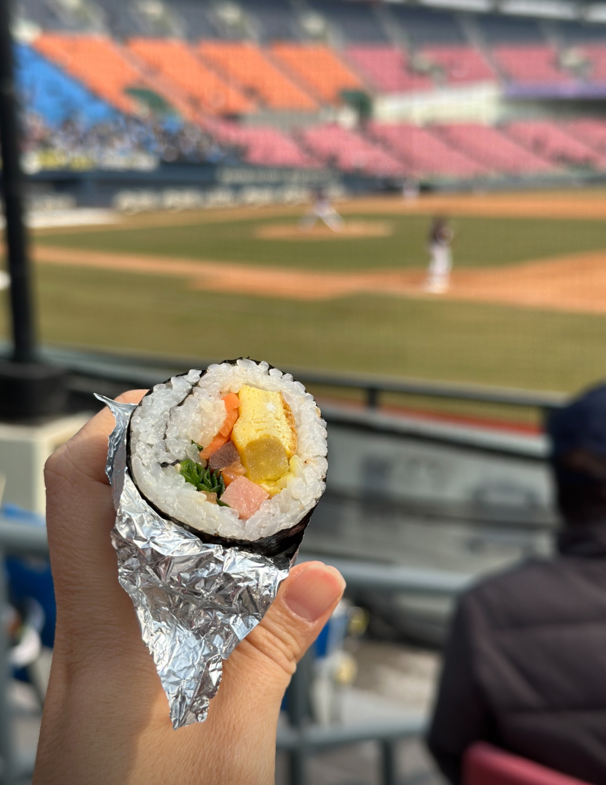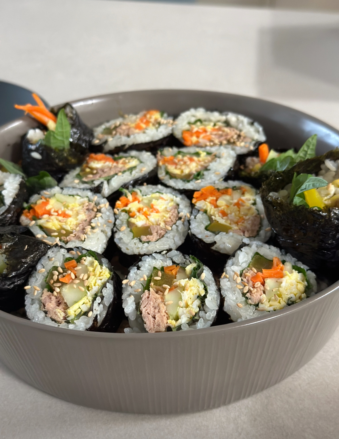 초등학교 시절 소풍날 먹었던 엄마표 김밥. 다진 소고기를 듬뿍 넣고 참기름 코팅을 받아 은은하게 빛나던 김밥. 보물찾기를 한바탕 하고 나서 고파진 배를 채우려 유원지 여기저기에 친구들과 삼삼오오 자리잡고 도시락을 꺼낸다. 요즘처럼 화려한 모양을 내는 것 없이 대부분은 비슷한 생김새의 김밥이 대부분이었다. 그런데도 각자의 김밥을 하나씩 나누어 맛본다. 들어가는 재료가 크게 다르지 않은데도 김밥의 맛은 모두 달랐다. 엄마의 손맛에 길들여져 엄마 김밥이 내 입맛에 제일 맛있었을까. 제일 맛있는 김밥인데 친구들과 나눠 먹어 내 입으로 들어가는 양이 적어져서 어린 마음에 어찌나 아쉬워했는지 모른다. 그래도 열심히 나눠줬던 것은 엄마의 김밥을 자랑하고 싶었던 것 같다. 한참 지났는데도 방금 싼 것처럼 밥이 따뜻했다고 기억하는 것은 소풍날이면 훨씬 분주하던 엄마의 모습이 투영돼서 아닐까. 김밥 싸는 엄마 옆에서 꼬투리도 집어 먹고 막 썰어둔 김밥도 집어 먹었을 텐데 저녁이면 또 김밥을 먹고 싶었다. 도시락에 쌀 수 없던 엄마표 어묵국을 곁들이면 이보다 완벽할 수 없는 한 상이었다. 그때부터 김밥은 이미 나의 소울푸드였던 것 같다. 김밥과 함께했던 즐거운 시간 덕분인지 지금도 한 입 꽉 차게 김밥을 넣고 오물거리면 마음인지 기분인지도 꽉 차오르는 기분이다.