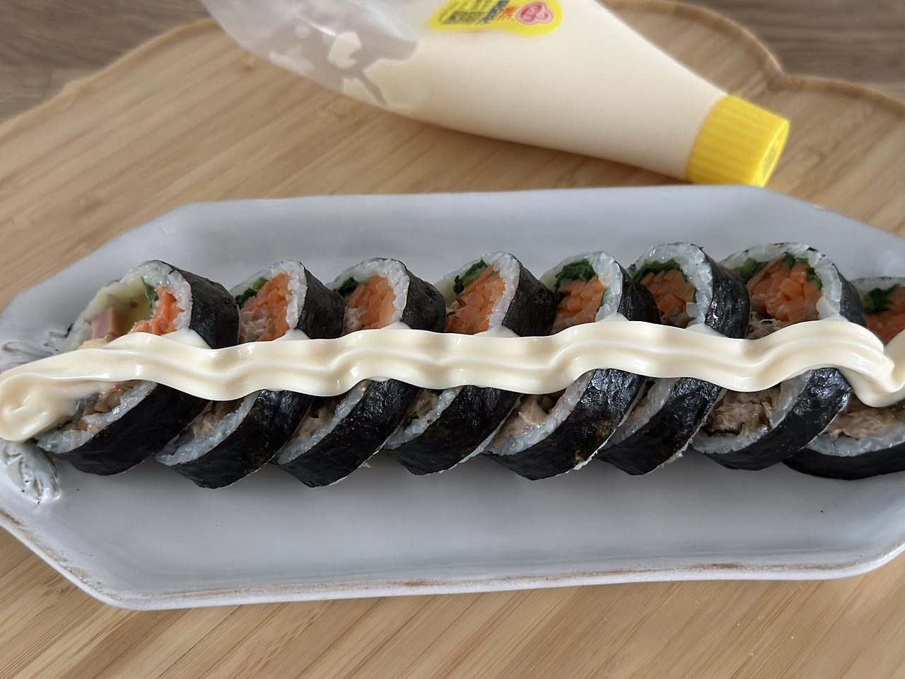 예전에 자주 갔던 김밥집에는 마요네즈가 비치되어 있었다. 주력 메뉴였던 참치김밥에 취향껏 마요네즈를 뿌려서 먹으라는 것이다. 김밥 말던 요리사님의 아이디어였는지, 김밥 먹던 손님의 조언이었는지는 모르겠다. 양배추에 버무리거나 구운 오징어를 가볍게 찍어 먹는 용도 정도였던 마요네즈를 음식에 뿌리라니 처음엔 입꼬리를 내려가며 고개를 절레절레 흔들었던 것 같기도 하다. 꽤 정색했던 것과는 다르게 바로 시도해 본 것은 도전정신이 강해서였는지, 소울푸드였던 김밥에 대한 특별대우였는지 알 수 없다. 하여튼 기억나는 것은 첫입부터 반해서 환호성을 질렀던 것 같다. “그래, 이 맛이야!”