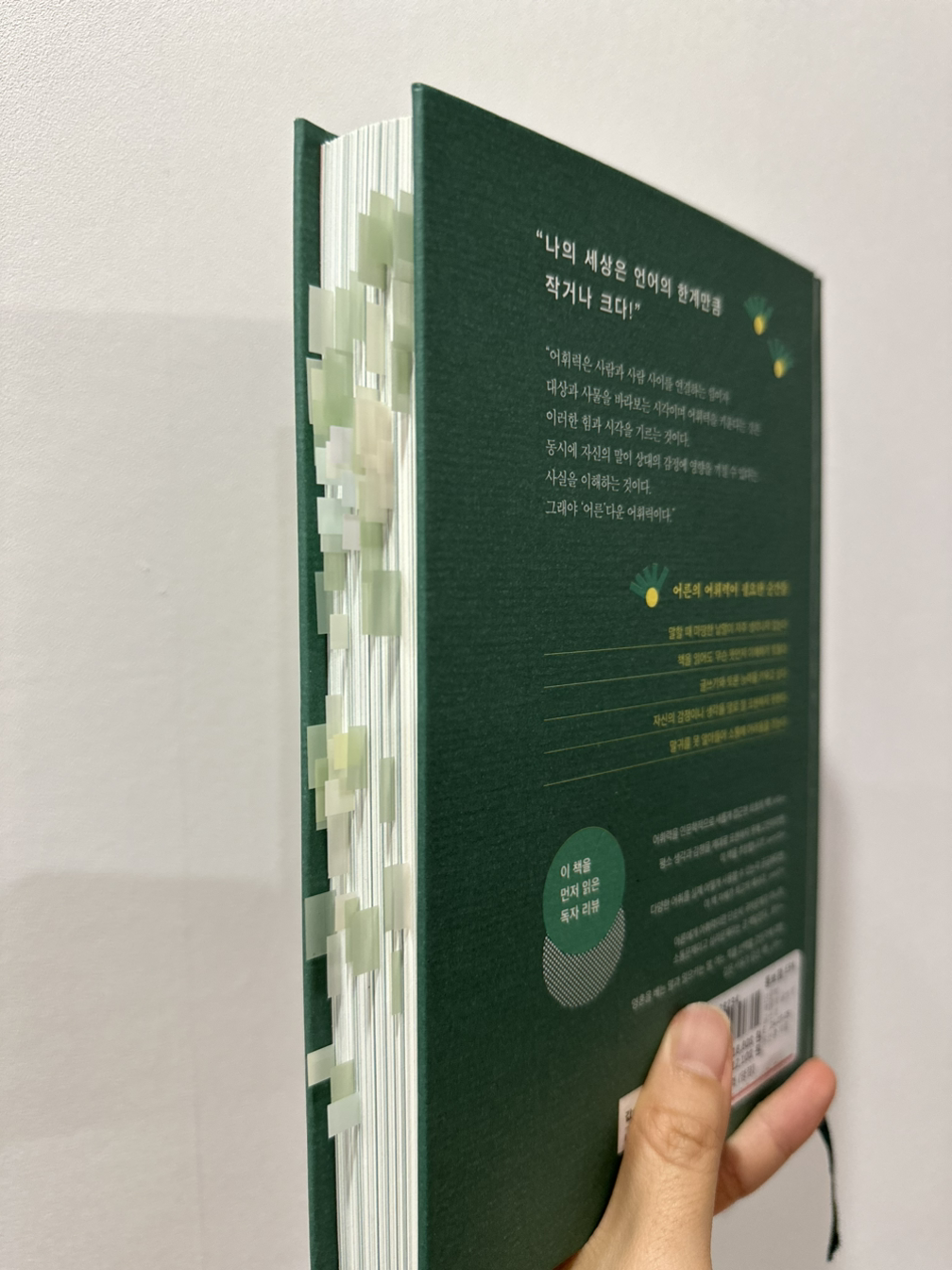 독서를 하면 저절로 생각이 깊어질 거라 예상했다. 엄청난 착각이었다. 아무리 열심히 책을 읽어도 그대로였다. 내가 원하는 것은 생각이 깊어지고 문제와 상황에 대한 통찰력이 생기는 것이었다. 책을 읽는 것에서 그치지 않고 글쓰기라는 후속 조치가 있어야 함을 다시 깨닫는다. 이 과정에서 적절한 어휘사용이 지렛대가 되어 내가 원하는 지점에 도달할 수 있게 해 준다는 것이다. 생각과 마음을 적절하게 전달하는 필요한 어휘를 고심하는 어른이고 싶다. 보다 따스하고 진정성 있게 말을 건네려 상대를 헤아릴 줄 아는 어른이고 싶다. 좀 더 나은 어른을 꿈꾸게 해주는 책을 만날 수 있어서 참 좋았다.