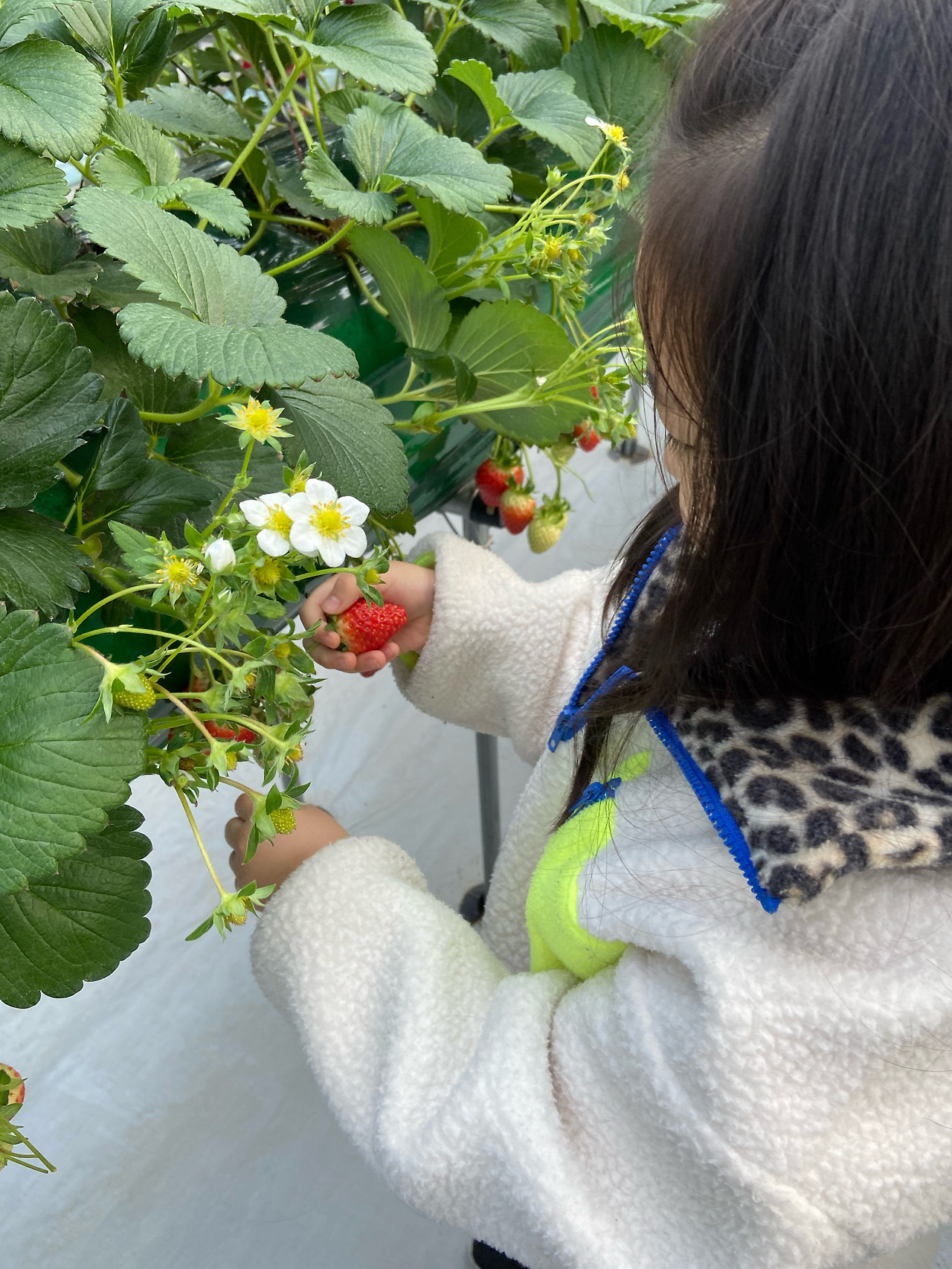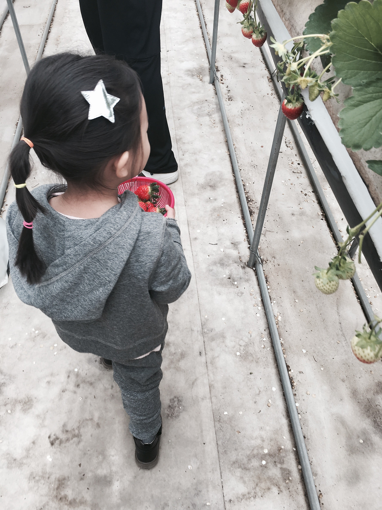 딸기와 관련된 추억도 많다. 아이와 함께 딸기밭에 가서 직접 딸기를 따보는 체험은 겨울철 필수 코스였다. 빨갛게 잘 익은 딸기를 손가락에, 사이에 넣고 '똑'하고 따는 것은 어른인 나도 처음 해 보는 재미있는 경험이었다. 따자마자 입에 쏙 넣는 신선한 딸기 맛도 잊히지 않는다. 비닐하우스 딸기밭에 들어서면 가득했던 달콤한 딸기향은 마음마저 달콤하게 만들어 주었다. 아이 역시 눈앞에 잔뜩 있는 딸기를 보며 소원을 다 이룬 듯 환하게 웃곤 했다. 지난 사진을 보니 즐거웠던 그때의 순간, 사랑스러웠던 작은 아이가 생생하다. 또 한 번은 '딸기 한 번 원 없이 먹어볼까?' 하는 마음으로 딸기 뷔페에 간 적도 있었다. 생딸기는 물론이고, 딸기로 만든 케이크, 주스, 디저트 등 다양한 메뉴를 맛볼 수 있는 그곳에서 아이는 눈을 반짝이며 이것저것 맛보느라 여념이 없었다.