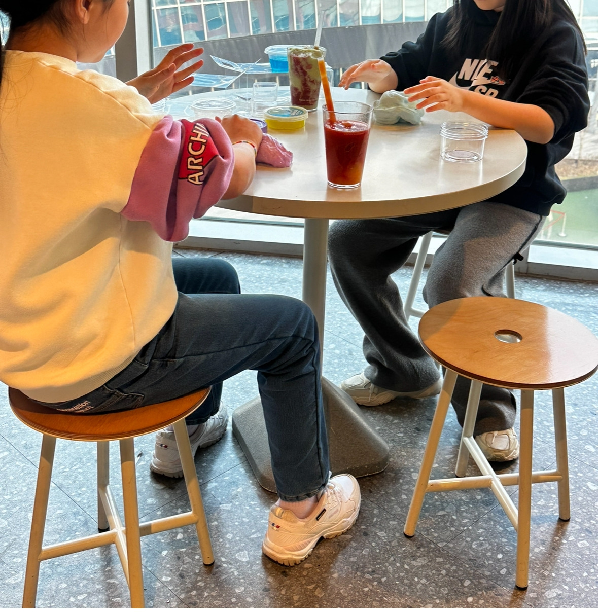 걱정에, 걱정을 더 하는 엄마는 전시회는 단둘이 가기로 한 채, 새로운 친구와의 만남을 준비했다. 이번에 만날 친구는 온라인상에서 얼굴을 몇 번 봤을 뿐, 서로 제대로 대화를 나눠본 적이 없는 사이였다. 화면 속에서 만났던 내향형의 두 친구는 얼굴을 마주하고는 짧게 인사를 주고받을 뿐이다. 예상대로 어색함이 감돈다. 서로를 힐끔힐끔 바라보며 탐색하지만, 누구 하나 먼저 적극적으로 다가가진 않는다. 친구에게 건네는 말인 듯한데 괜히 옆에 있는 엄마에게 말을 건네기도 한다. 시간이 조금씩 흐르면서 두 아이는 서서히 긴장을 풀기 시작했다. 문구점 한쪽에 진열된 슬라임 코너가 눈에 들어오자, 두 아이가 동시에 움직였다. 슬라임을 넘나들며 둘은 반짝이는 눈빛을 교환했다. 슬라임을 사주지 않겠다는 엄마들을 대동단결하여 설득한 끝에 하나씩 사기로 했다. 둘은 각자 마음에 드는 슬라임을 하나씩 골랐다. 슬라임을 고르는 동안 조금씩 대화를 나누기 시작하더니 아까의 어색함은 온데간데없이 발맞춰 계산대로 향했다. 슬라임을 손에 쥔 순간부터 아이들은 서로의 손을 쥔 듯 한층 가까워졌다. 슬라임을 가지고 놀 수 있도록 둘만의 공간을 마련해 주니 손끝으로 느껴지는 부드럽고 쫀득한 촉감에 집중하기 시작했다. 마치 슬라임 전문가가 시연을 보이듯 진지한 두 아이의 모습에 엄마들은 웃음이 새어 나온다. 각자가 지닌 슬라임 묘기를 선보이며 즐거워한다. 많은 대화가 오가지는 않았지만 간간이 들리는 웃음소리와 환한 미소만으로도 아이들이 얼마나 즐거워하고 있는지 충분히 알 수 있었다. 슬라임을 만지작거리는 손길, 몰입한 듯 집중하는 눈빛, 명랑한 웃음소리. 이 모든 것이 처음 만난 둘 사이를 가득 채웠다. 비록 짧은 시간이었지만 둘 사이에는 따뜻한 감정이 싹트고 있는 것이 분명해 보였다. 슬라임으로 물꼬를 튼 아이들은 헤어지기 전 서로의 전화번호를 저장하며 아쉬워했다. 서서히 마음의 문을 열어가는 아이들의 모습에 엄마들은 안도와 흐뭇함이 뒤섞인 미소를 지었다. 이제 막 시작된 두 아이의 우정이 오래도록 이어지기를 기대한다. 그런 엄마들의 마음을 읽기라도 한 듯 아이들은 서로의 엄마를 바라보며 묻는다.