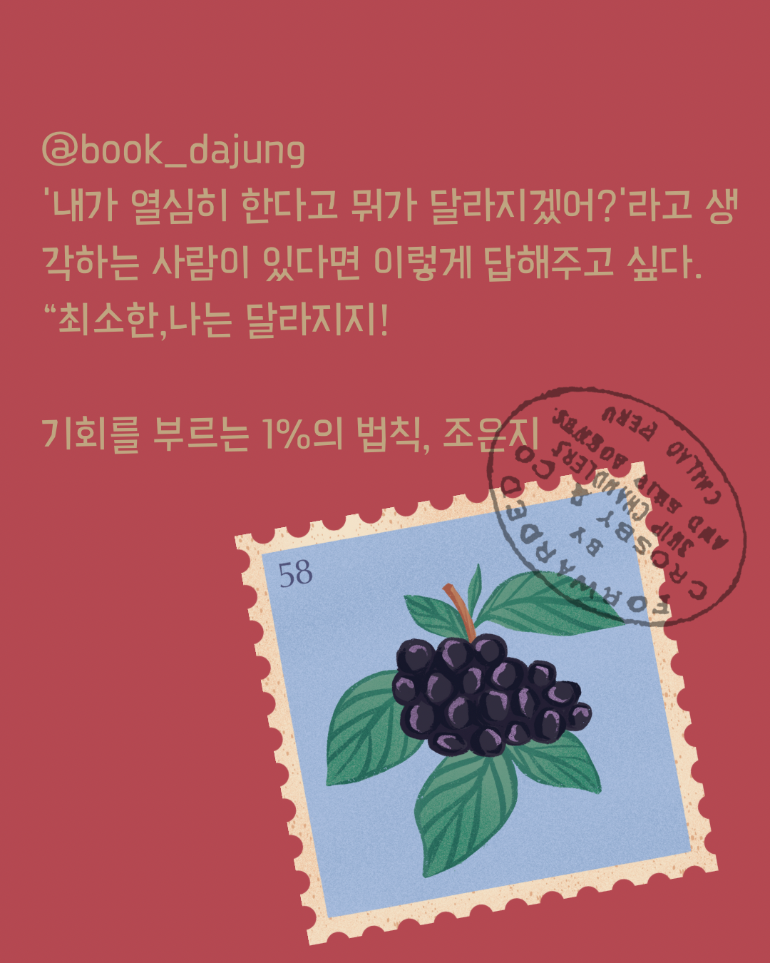 넓은 시야로 숲을 봐야 한다고 생각했다. 그런데 그게 너무 어려웠다. 세상에 대해, 나에 대해 아는 것이 미천해서 큰 그림을 그리기가 어려웠다. 이 문장에 마음이 끌린 이유가 있었다. 일단 지금은 나를 위한 길이 있다고 믿고, 내가 그 방향으로 가고 있다고 믿으며 눈앞에 보이는 나무에, 돌멩이 하나가 집중해 봐야겠다. 지금 이 길 끝에 뭐가 있는지 당장은 모르겠지만 길을 한참 가다 보면 그 끝이 보일 테고 그러려면 일단 길을 가야 한다. 12월은 망설이고 주저할 시간조차 부족할지 모르니, 일단 가보자. 뚜벅뚜벅.