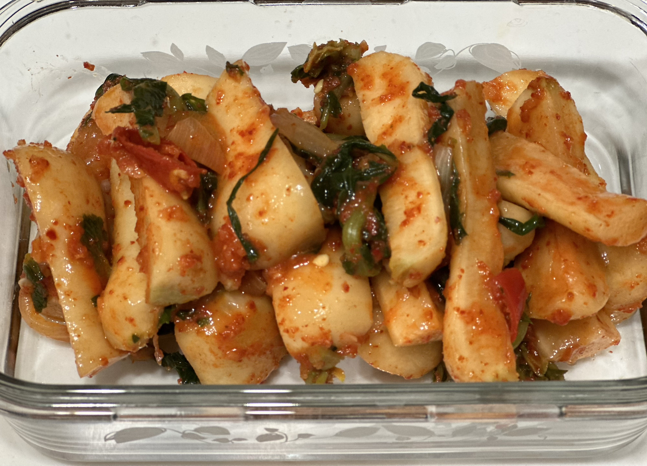 엄마께 김치 잘 왔다고, 하나 먹어보니 너무 맛있다고 문자를 드린다. 엄마의 걱정을 덜어드리고 나니 아이에게 책 읽어주는 목소리에도 여유가 붙는다. 떨어져 사는 부모님께 받은 사랑을 꼭 붙어 있는 아이에게 전한다. 내일은 아침부터 흰 밥에 알타리김치를 잔뜩 먹어야겠다.
