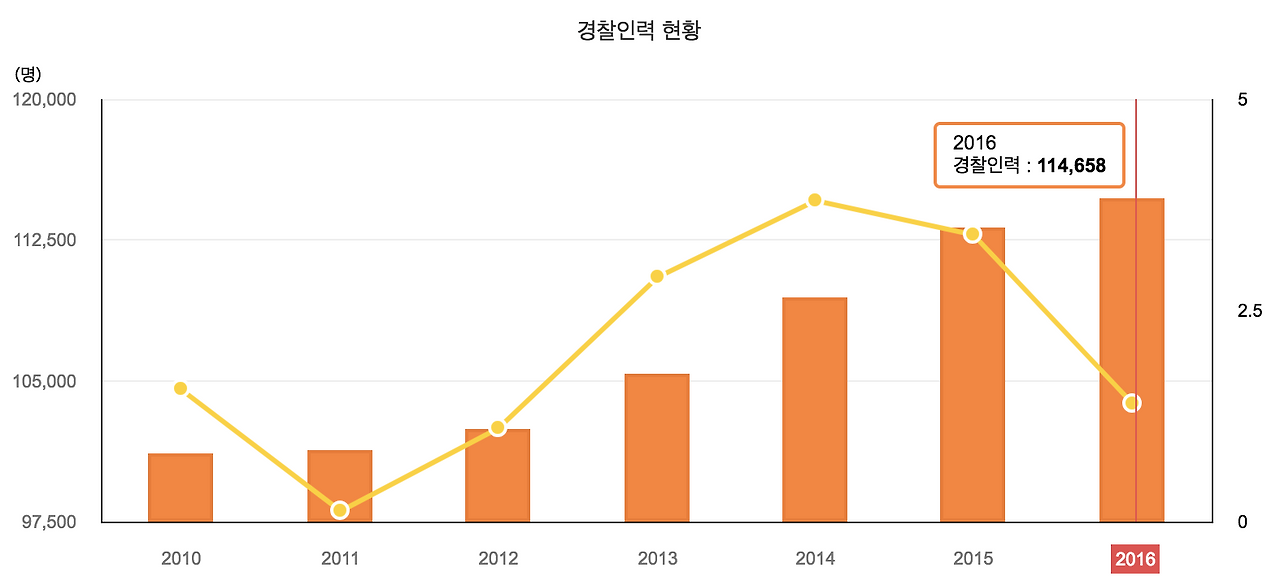 2016년 기준 우리나라 경찰 공무원의 수는 11만 4000명 정도다 매년 그 수가 늘어났으니 2018년엔 12만 명이 넘는 사람들이 경찰이라는 이름으로 살아간다 12만 명이나 되는 조직이 전체가 썩었을 리는 없다 어딜 가나 물을 흐리는 소수의 사람들이 전체를 욕먹게 한다 대부분은 투철한 사명감으로 경찰이란 이름에 자부심을 가지고 살아가며 그런 대다수의 정의로운 경찰이 전 세계 치안 1~2위의 대한민국을 만들었다고 생각한다
