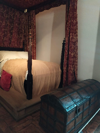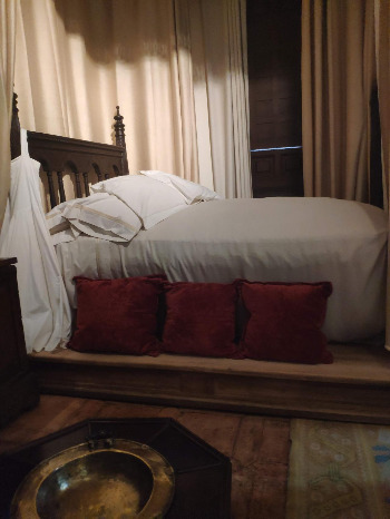 작가 세르반테스, 아니죠, 그의 아버지인 로드리고의 침실입니다. 하급귀족이긴 했어도 침대 위에 근사하게 캐노피도 달고 그 옆에는 카톨릭 성인 조각상도 놓았어요. 중동을 가보면 이슬람교가 종교를 넘어 생활의 기반이 된 것처럼, 유럽도 기독교 (카톨릭과 개신교)는 거의 생활로 자리잡혀 있지요. 클래식한 조각과 회화를 보면 늘 기독교의 상징이 숨어 있고, 그것을 볼 때마다 사람들이 마음의 안정을 얻고 기도하며 묵상했겠다는 걸 알 수 있습니다.