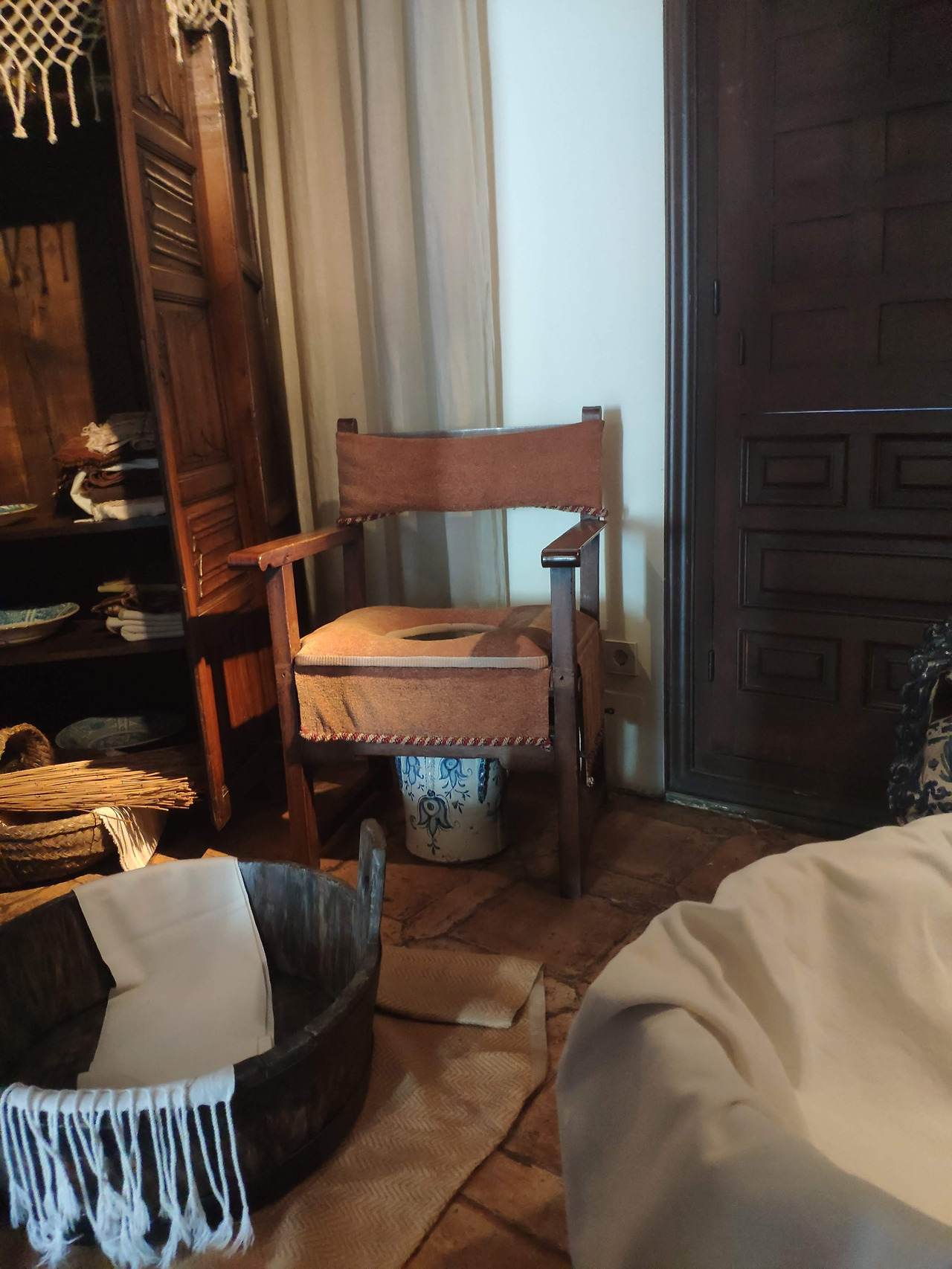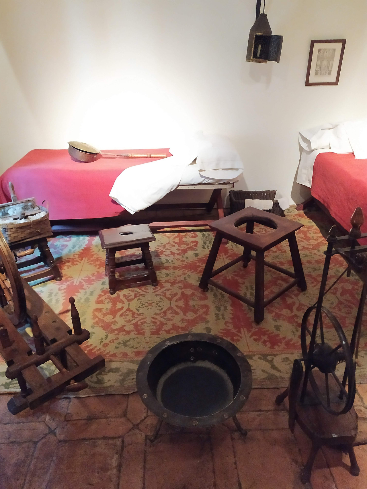 아버지의 방에서 좀 떨어진 곳에 있는 어머니와 아이의 침실이에요. 생각보다 많이 소박하지요. 그보다도 왜 부부가 한방에서 이불을 덮지 않고 따로 잤는지 궁금해지지 않나요. 카톨릭의 위대한 보호자로 자처한 스페인에서는 부부라 할지라도 형식상으로는 종교윤리상 엄격하게 선을 그어놓곤 했지요. 요즘처럼 부부관계에 문제가 있어 각방써! 하는게 아니랍니다.
